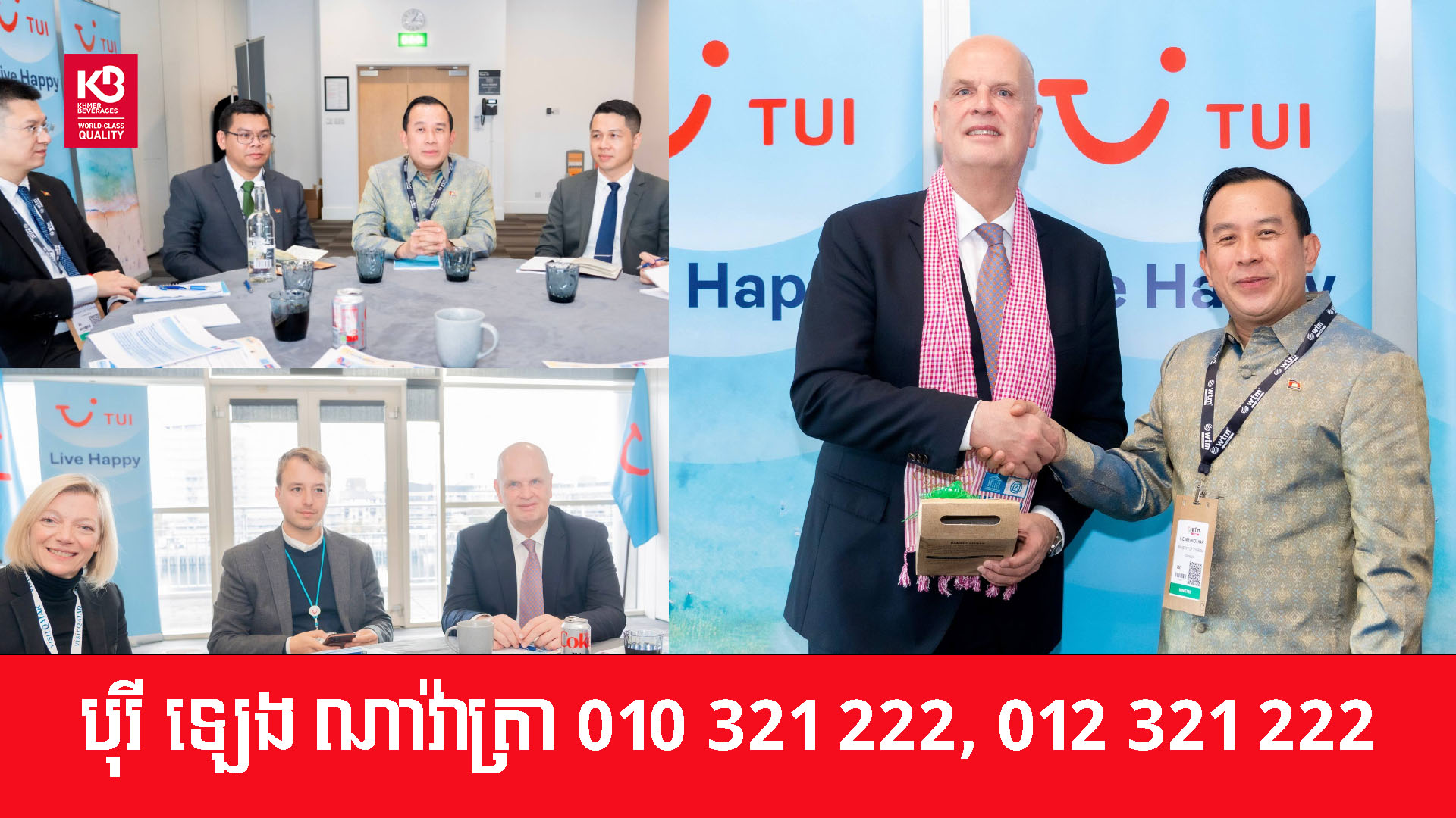 នេះបើតាមការឱ្យដឹងក្នុងជំនួបរវាង លោក ហួត ហាក់ រដ្ឋមន្រ្តីក្រសួងទេសចរណ៍ ជាមួយ លោក Thomas Ellerbeck សមាជិកនៃគណៈកម្មាធិការប្រតិបត្តិ និងជានាយកក្រុមសាជីវកម្ម និងកិច្ចការទំនាក់ទំនងខាងក្រៅនៃក្រុមហ៊ុន TUI Group កាលពីថ្ងៃទី៥ វិច្ឆិកា ក្នុងឱកាសគណៈប្រតិភូជាន់ខ្ពស់ក្រសួងទេសចរណ៍ និងក្រុមប្រឹក្សាភិបាលសិក្សាទីផ្សារ និងផ្សព្វផ្សាយកម្ពុជា (CTB) ចូលរួមពិព័រណ៍ទេសចរណ៍អន្តរជាតិ (World Travel Market) នៅទីក្រុងឡុងដ៏ ចក្រភពអង់គ្លេស។