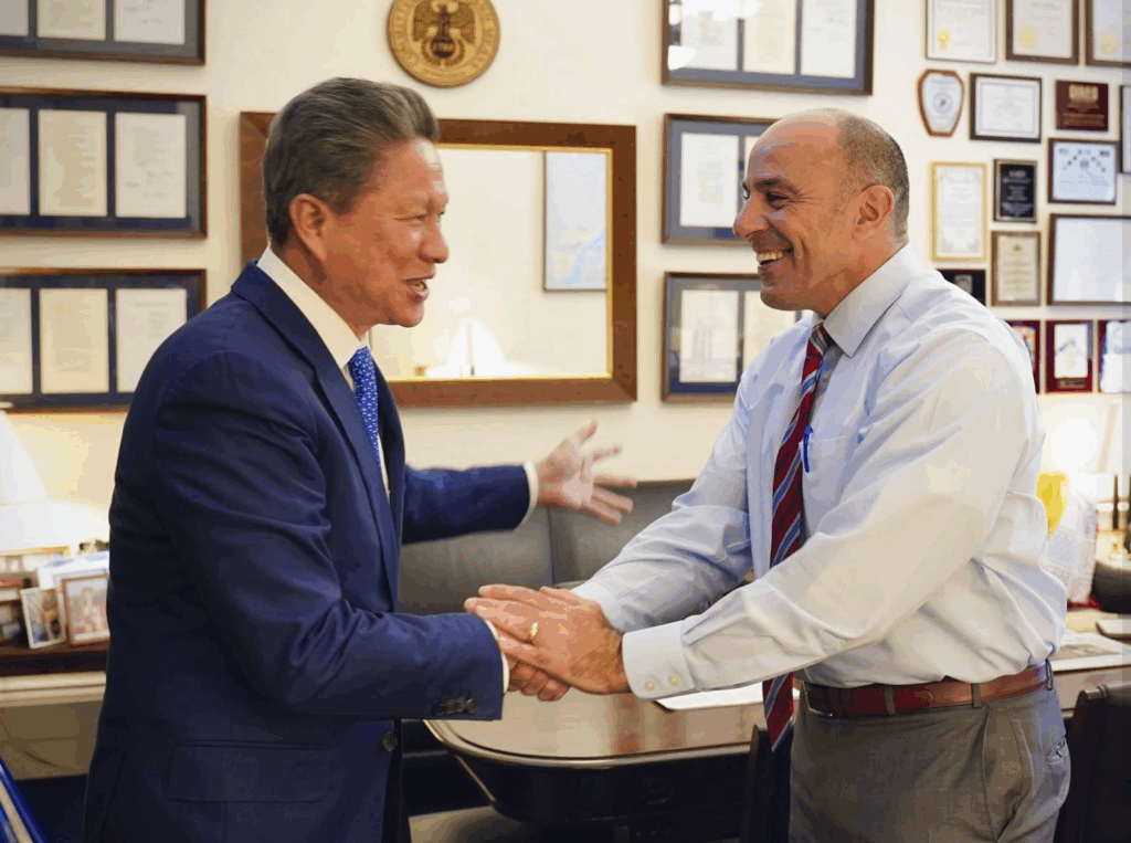 កាយវិការមិត្តភាពដ៏កក់ក្ដៅស្និទ្ធស្នាល រវាង លោកឧបនាយករដ្ឋមន្ត្រី ស៊ុន ចាន់ថុល ជាមួយ លោកសមាជិកសភា Jimmy Panetta នៅវ៉ាស៊ីងតុន ឌីស៊ី មិនត្រឹមតែជាទំនាក់ទំនងរវាងអ្នកនយោបាយប៉ុណ្ណោះទេ ប៉ុន្តែជាមិត្តភាពដែលត្រូវបានកសាងឡើងតាមរយៈការគោរពឱ្យតម្លៃគ្នាទៅវិញទៅមក និងកិច្ចសហការកន្លងមក ដែលឆ្លុះបញ្ចាំងពីការយកចិត្តទុកដាក់របស់សភាអាម៉េរិក ក្នុងការថែរក្សាទំនាក់ទំនងជាមួយកម្ពុជា។