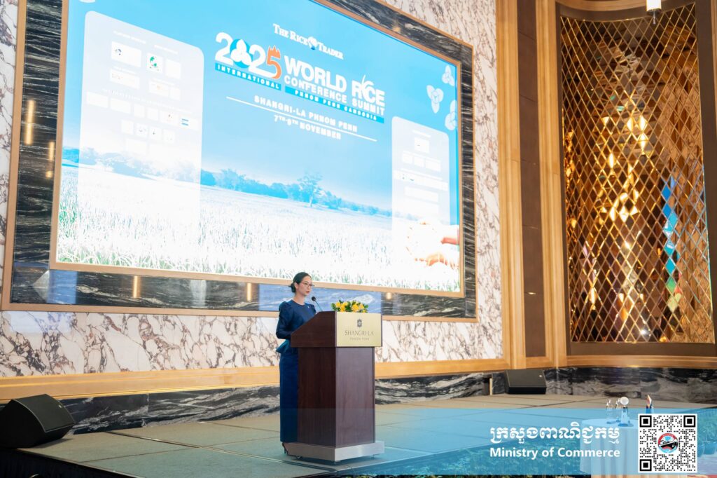 លោកស្រី ចម និម្មល រដ្ឋមន្ត្រីក្រសួងពាណិជ្ជកម្ម ក្នុងឱកាសសន្និសីទស្រូវអង្ករពិភពលោក ឆ្នាំ២០២៥ បានជំរុញអ្នកវិនិយោគ និងធុរជនអន្តរជាតិ ផ្សារភ្ជាប់ទំនាក់ទំនងជាមួយស្ថាប័នសំខាន់ៗនានា ដើម្បីស្វែងយល់ពីកាលានុវត្តភាពវិនិយោគសម្រាប់ពាណិជ្ជកម្មប្រកប ដោយចីរភាព និងនវានុវត្តន៍នៅក្នុងវិស័យស្រូវអង្ករកម្ពុជា។