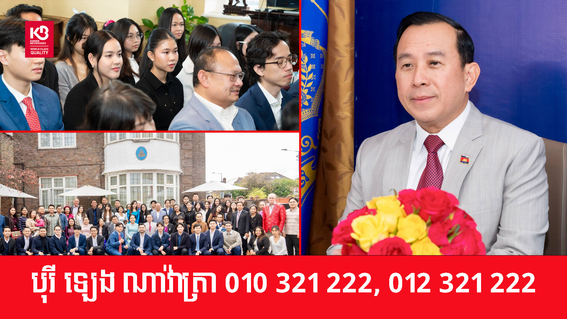 នាឱកាសនោះលោករដ្ឋមន្រ្តី បានពាំនាំនូវក្តីនឹករលឹក និងការសួរសុខទុក្ខពីថ្នាក់ដឹកនាំគ្រប់ជាន់ថ្នាក់ពីសំណាក់ព្រះករុណាព្រះបាទ នរោត្តម សីហមុនី សម្តេចតេជោ ហ៊ុន សែន និងសម្តេចធិបតី ហ៊ុន ម៉ាណែត ដល់បងប្អូនសហគមន៍ខ្មែរ សិស្ស និងនិស្សិតទាំងអស់ដែលកំពុងរស់នៅ និងធ្វើការនៅចក្រភពទាំងអស់។