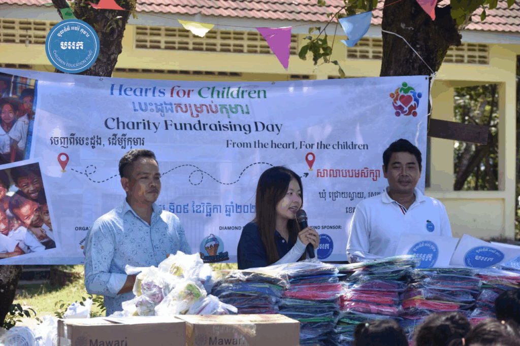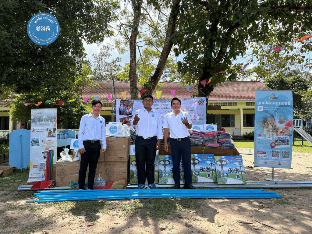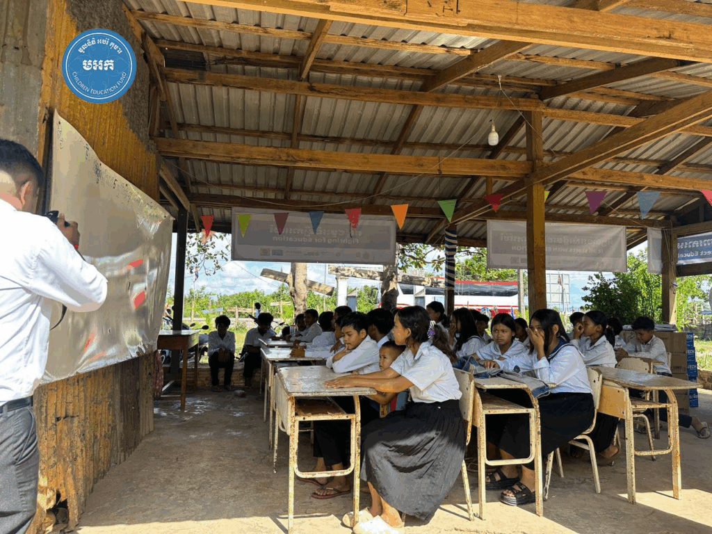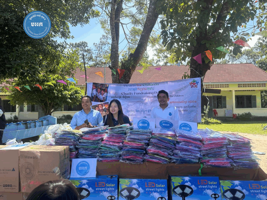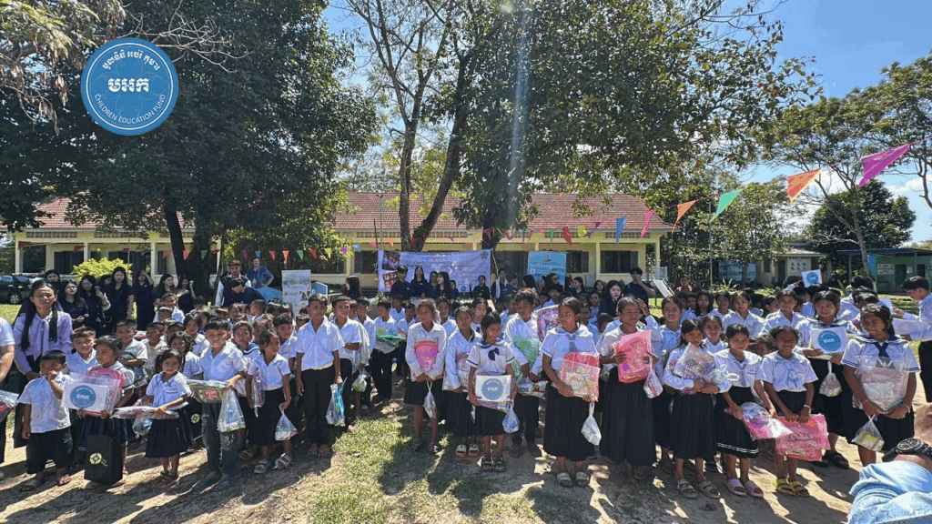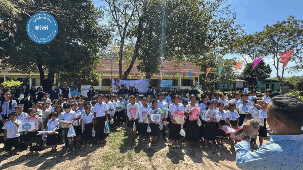 អបអរសាទរទិវាបុណ្យឯករាជ្យជាតិ ៩ វិច្ឆិកា ខួបលើកទី៧២ និងថ្ងៃកំណើតកងយោធពលខេមរភូមិន្ទ ក្រុមការងារ លោកបណ្ឌិត គី សេរីវឌ្ឍន៍ ប្រធាន «មូលនិធិអប់រំកុមារ» បានសហការជាមួយក្រុមនិស្សិត មកពី វិទ្យាស្ថាន CamEd ចំនួន ៤៥នាក់ នាំយកសៀវភៅ និងសម្ភារៈសិក្សានានា ជូនសិស្សានុសិស្សចំនួន ១៧០នាក់ (សិស្សស្រី ៧៤នាក់) និងលោកគ្រូ អ្នកគ្រូ ចំនួន ៧នាក់ នៅសាលាបឋមសិក្សាឈើនាង ស្ថិតនៅ ភូមិឈើនាង ឃុំជ្រោយស្វាយ ស្រុកស្រែអំបិល ខេត្តកោះកុង កាលពីរសៀលថ្ងៃទី៩ ខែវិច្ឆិកា ឆ្នាំ២០២៥។