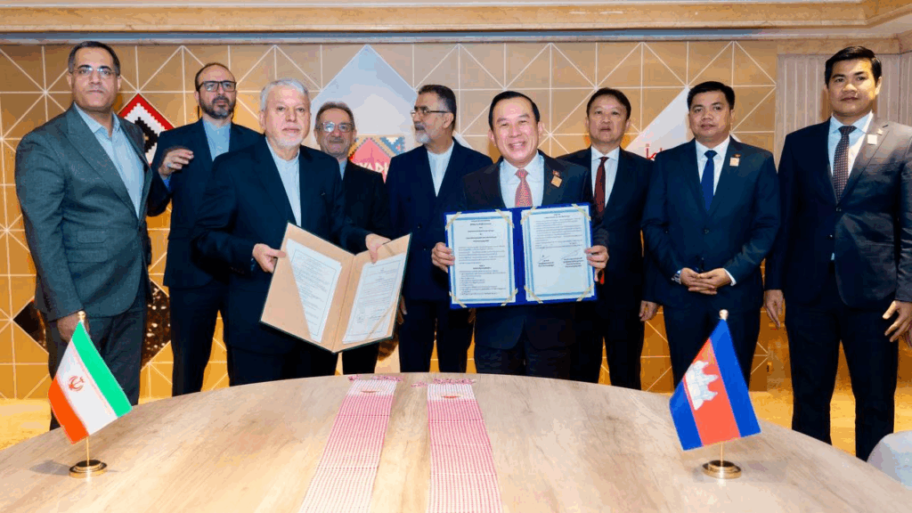ការចុះអនុស្សរណៈរវាងកម្ពុជា និងអ៊ីរ៉ង់ បានធ្វើឡើងក្នុងឱកាសចូលរួមកិច្ចប្រជុំមហាសន្និបាតអង្គការទេសចរណ៍សហប្រជាជាតិ លើកទី២៦ (UN Tourism- 26th General Assembly) នៅរាជធានីរីយ៉ាដ កាលពីថ្ងៃទី១០ ខែវិច្ឆិកា ឆ្នាំ២០២៥ រវាង លោក ហួត ហាក់ រដ្ឋមន្រ្តីក្រសួងទេសចរណ៍ នៃព្រះរាជាណាចក្រកម្ពុជា និងលោក Seyed Reza Salehi Amiri រដ្ឋមន្រ្តីក្រសួងបេតិកភណ្ឌវប្បធម៌ ទេសចរណ៍ និងសិប្បកម្មនៃសាធារណរដ្ឋឥស្លាមអ៊ីរ៉ង់។