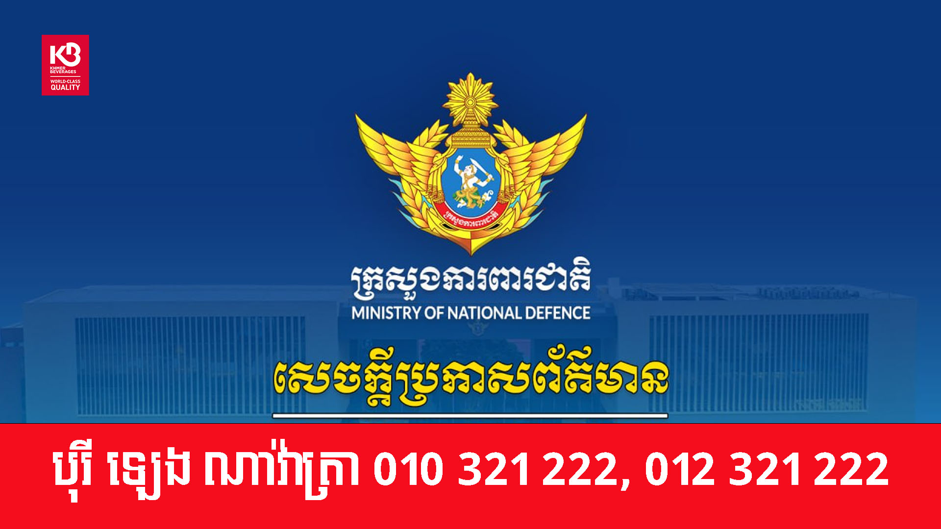 ក្រសួងការពារជាតិ បន្តប្តេជ្ញាចិត្តក្នុងការធ្វើការឱ្យបានជិតស្និទ្ធជាមួយភាគីថៃ ក្នុងការលើកកម្ពស់សន្តិភាព និងស្ថិរភាពរវាងប្រទេសទាំងពីរ ជាពិសេសធានាដល់សន្តិសុខ និងសុវត្ថិភាពរបស់ប្រជាជនស៊ីវិល ស្របតាមសេចក្តីថ្លែងការណ៍រួមស្តីពីសន្តិភាពរវាងកម្ពុជានិងថៃ ដែលត្រូវបានចុះហត្ថលេខាកាលពីថ្ងៃទី២៦ ខែតុលា ឆ្នាំ២០២៥៕