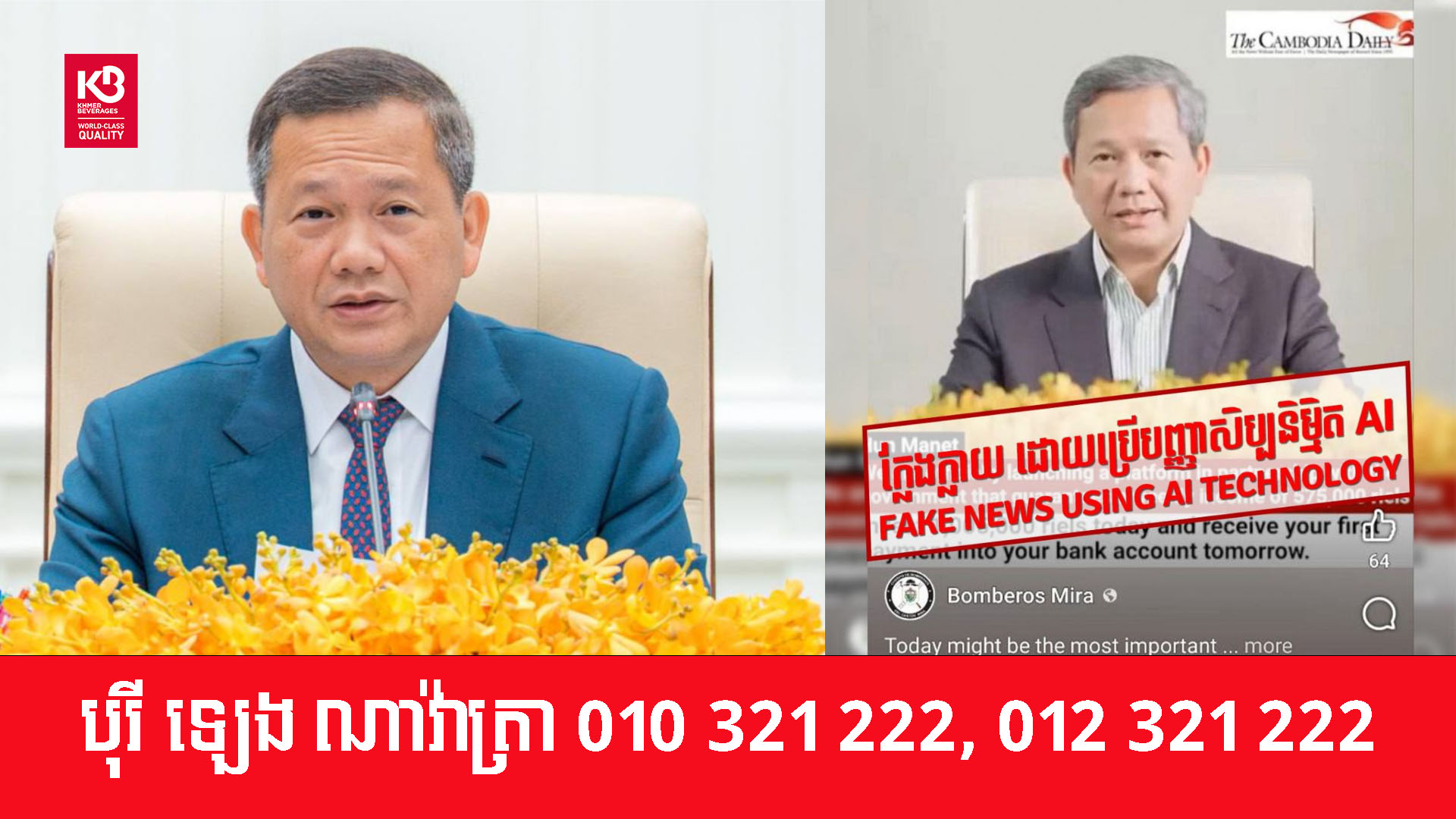 នៅលើទំព័រហ្វេសប៊ុក នៅថ្ងៃទី ១៣ ខែវិច្ឆិកា ឆ្នាំ២០២៥ សម្តេចធិបតី បានជម្រាបជូនសាធារណជនឱ្យបានជ្រាបថា មានករណីហ្វេសប៊ុកបានបង្កើតវីដេអូបច្ចេកវិទ្យា AI ក្លែងបន្លំសម្លេងរបស់សម្តេចធិបតីនាយករដ្ឋមន្ត្រី ដើម្បីបញ្ចេញសារផ្ទុយពីការពិត​។ អាស្រ័យហេតុនេះ សូមសាធារណជនមេត្តាជ្រាបជាព័ត៌មាន និងបង្កើនការប្រុងប្រយ័ត្នខ្ពស់ចំពោះការចែករំលែក និងជឿជាក់លើសារដែលមិនមែនជាការពិត។