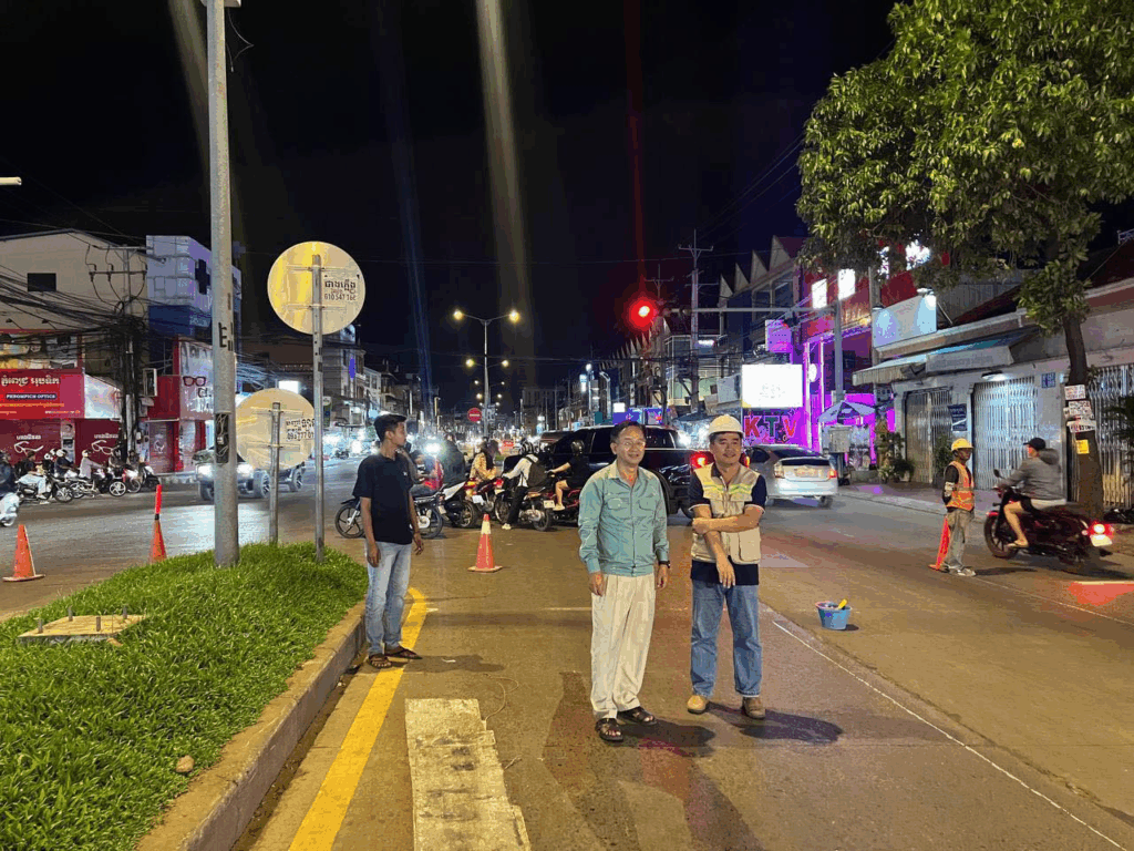 នៅយប់ថ្ងៃទី១៩ ខែវិច្ឆិកា ឆ្នាំ២០២៥ លោក ចេង មុនីរ៉ា អភិបាល នៃគណៈអភិបាលខណ្ឌសែនសុខ សហការជាមួយមន្ទីរសាធារណការ និងដឹកជញ្ជូនរាជធានីភ្នំពេញ អ៊ុតគំនូសចរាចរណ៍ នៅលើកំណាត់មហាវិថីលេខ១០១៩ (ភ្នំពេញ-ហាណូយ) ក្នុងសង្កាត់ភ្នំពេញថ្មី និងសង្កាត់គោកឃ្លាង ខណ្ឌសែនសុខ ដើម្បីបង្កលក្ខណៈងាយស្រួលជូនដល់ប្រជាពលរដ្ឋធ្វើដំណើរ។