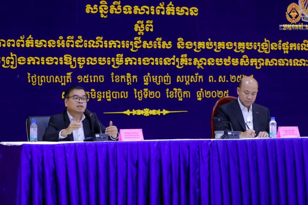នៅព្រឹកថ្ងៃទី២០ ខែវិច្ឆិកា ឆ្នាំ២០២៥ គណៈកម្មការរៀបចំការប្រឡងប្រជែង បានរៀបចំសន្និសីទសារព័ត៌មានស្ដីពី «វឌ្ឍនភាពព័ត៌មានអំពីដំណើរការជ្រើសរើស និងគ្រប់គ្រងគ្រូបង្រៀនផ្អែកលើកិច្ចព្រមព្រៀងការងារ ឱ្យចូលបម្រើការងារនៅគ្រឹះស្ថានបឋមសិក្សាសាធារណៈ» ក្រោមអធិបតីភាពឯកឧត្តម ហ៊ុន ម៉ានី ឧបនាយករដ្ឋមន្រ្តី រដ្ឋមន្រ្តីក្រសួងមុខងារសាធារណៈ និងជាប្រធានគណៈកម្មការរៀបចំការប្រឡងប្រជែង អមដោយឯកឧត្តម យក់ ប៊ុនណា រដ្ឋលេខាធិការប្រចាំការក្រសួងមុខងារសាធារណៈ និងឯកឧត្តមបណ្ឌិតសភាចារ្យ ណាត ប៊ុនរឿន រដ្ឋលេខាធិការក្រសួងអប់រំ យុវជន និងកីឡា។