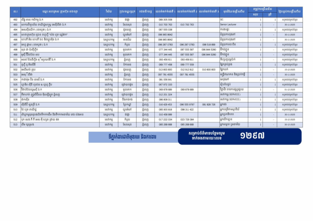 ព័ត៌មានបន្ថែមសម្រាប់ឱកាសការងារ បងប្អូនអាចទាក់ទងទៅលេខ ១២៩៧!