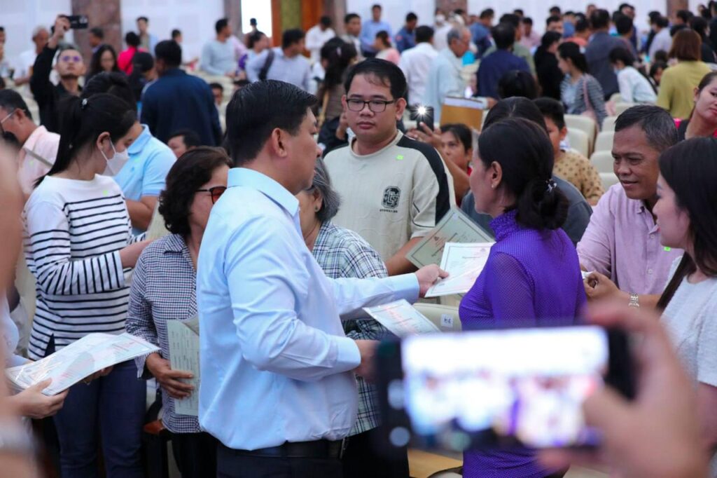 សូមជម្រាបថា ការចែកបណ្ណកម្មសិទ្ធិ និងអនុវត្តនីតិវិធីចុះបញ្ជីផ្ទេរកម្មសិទ្ធិជូនអតិថិជនបុរី ឡេង ណាវ៉ាត្រា គម្រោងផ្លូវជាតិលេខ ៦អា និងគម្រោងជ្រែមួយរយ ស្ថិតនៅភូមិជ្រែមួយរយ និងភូមិអន្លង់ស្លែង ឃុំសំបួរមាស ស្រុកមុខកំពូល ខេត្តកណ្តាល នឹងធ្វើឡើងរយៈពេល ៣ថ្ងៃ ចាប់ពីថ្ងៃទី២៧ ដល់ថ្ងៃទី២៩ ខែវិឆ្ឆិកា ឆ្នាំ២០២៥ រៀងរាល់ម៉ោងធ្វើការ នៅទីស្តីការក្រសួងរៀបចំដែនដី។