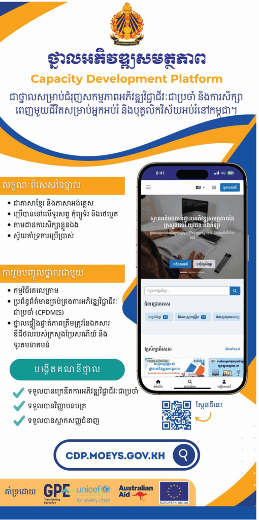 ក្រសួងអប់រំ យុវជន និងកីឡា និងអង្គការយូនីសេហ្វ បានប្រកាសដាក់ឱ្យដំណើរការជាផ្លូវការថ្នាលឌីជីថល “ថ្នាលអភិវឌ្ឍសមត្ថភាព (CDP)” ដែលជាប្រព័ន្ធគ្រប់គ្រងការសិក្សាដែលត្រូវបានរៀបចំឡើងសម្រាប់គ្រូបង្រៀន គ្រូឧទ្ទេស និងបុគ្គលិកអប់រំនៅកម្ពុជា។