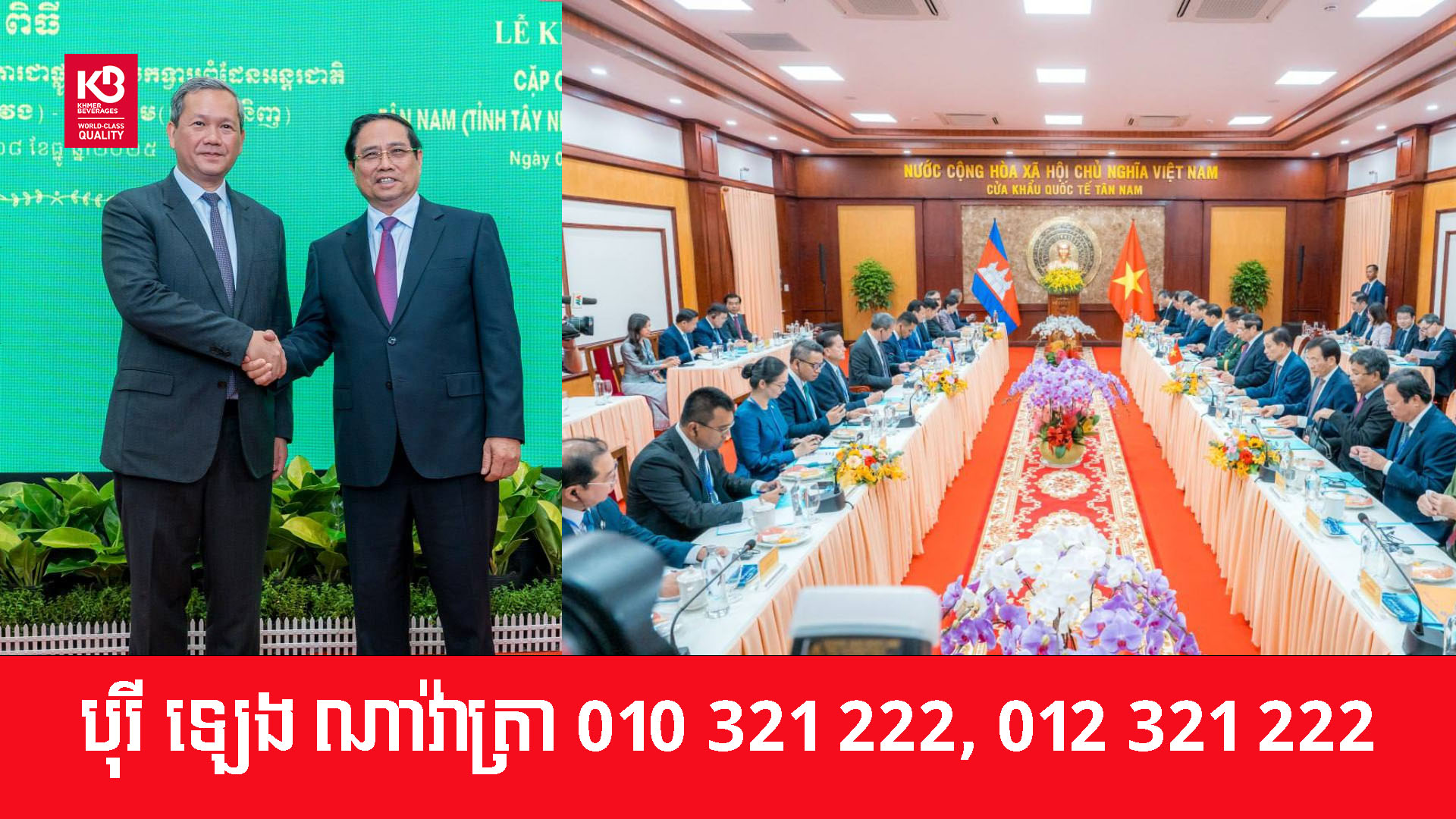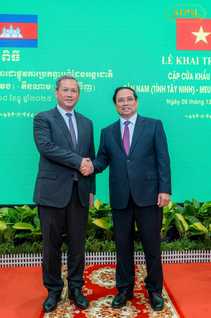 សម្តេចធិបតី ហ៊ុន ម៉ាណែត នាយករដ្ឋមន្ត្រីកម្ពុជា និង​ លោក ផាម មិញជិញ (PHAM Minh Chinh) នាយករដ្ឋមន្រ្តីវៀតណាម បានបន្តជំរុញទំនាក់ទំនង និងកិច្ចសហប្រតិបត្តិការទ្វេភាគីឱ្យកាន់តែស៊ីជម្រៅ និងរឹងមាំបន្ថែមទៀត។ ការសហការគ្នារវាងនាយករដ្ឋមន្រ្តីទាំងពីរ នៅក្នុងជំនួបពិភាក្សាការងារទ្វេភាគី ក្នុងឱកាសនៃការអញ្ជើញជាអធិបតីក្នុងពិធីសម្ពោធដាក់ឱ្យដំណើរការជាផ្លូវការច្រកទ្វារព្រំដែនអន្តរជាតិ ម៉ឺនជ័យ(ខេត្តព្រៃវែងរបស់កម្ពុជា)-តឹនណាម(ខេត្តតៃនិញរបស់វៀតណាម) នាថ្ងៃទី៨ ខែធ្នូ ឆ្នាំ២០២៥។