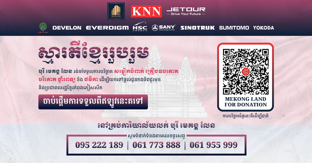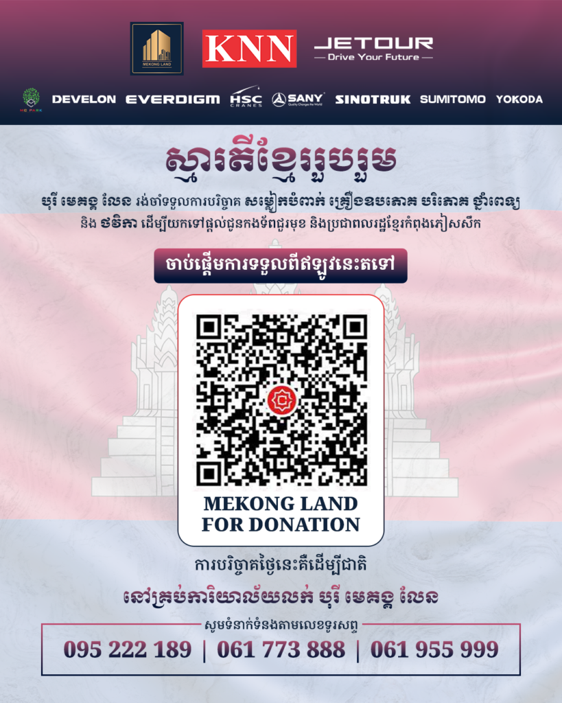 (ភ្នំពេញ)៖ ខ្មែររួមគ្នា ខ្មែរឈ្នះ!បុរី មេគង្គ លែន និងក្រុមហ៊ុនបុត្រសម្ព័ន្ធមានដូចជា ក្រុមហ៊ុន ខេ អិន អិន ខេមបូឌា និងផ្សារសហគមន៍ MC Park បង្កើតមូលនិធិដើម្បីប្រមូលសម្លៀកបំពាក់ គ្រឿងបរិភោគនិងឧបភោគ ថ្នាំពេទ្យ ថវិកា និងសម្ភារប្រើប្រាស់ផ្សេងៗសម្រាប់បន្ដការគាំទ្រទៅកាន់វីរកងទ័ព និងប្រជាពលរដ្ឋដែលបាននិងកំពុងភៀសសឹក។