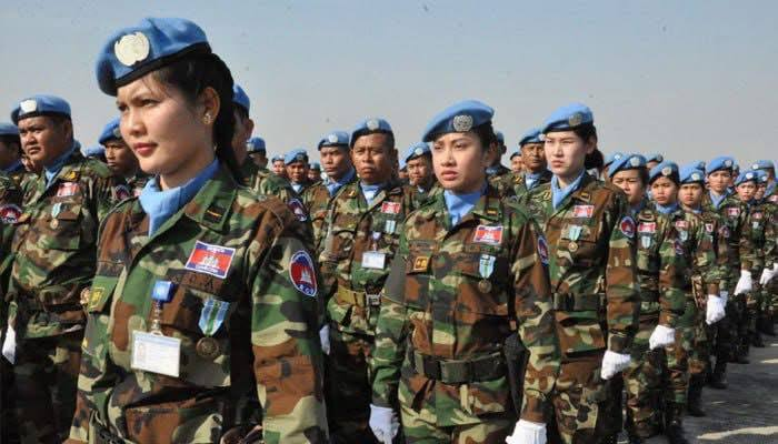 សម្ដេចតេជោ ហ៊ុន សែន បានបញ្ជាក់ថា កម្ពុជាបានចូលរួមយ៉ាងសកម្មនៅក្នុងសកម្មភាពថែរក្សាសន្តិភាព ស្ថិរភាព ដែលក្នុងរយៈពេល ជាង១០ឆ្នាំកន្លងទៅនេះ កម្ពុជារបស់យើងបានបញ្ជូនកងទ័ពមួកខៀវ ទៅក្រៅប្រទេសជាច្រើននាក់ផងដែរ ក្នុងនោះកងទ័ពជាស្ត្រី ទាំងទ័ពបុរស ទៅកាន់ប្រទេសមួយចំនួនដូចជា ស៊ូដង់ ស៊ូដង់ខាងត្បូង លីបង់ អាហ្វ្រិកកណ្តាល ស៉ីរី សាយប្រឹស ម៉ាលី។ល។ កងកម្លាំងទ័ពមួកខៀវកម្ពុជា ជាកម្លាំងជំនាញ ផ្នែកវិស្វកម្ម កម្លាំងពេទ្យកម្រិត២ កម្លាំងបោសសម្អាតមីន កម្លាំងអាវុធហត្ថ និងកម្លាំងកម្ទេចយុទ្ធភ័ណ្ឌមិនទាន់ផ្ទុះ ហើយកាលពីពេលថ្មីៗនេះ កម្ពុជាបានជាប់ជាប្រទេសនាំមុខគេដែលផ្តល់ឱកាសឲ្យនារីកងទ័ពមួកខៀវទៅចូលរួមបេសកកម្មជាលក្ខណៈអន្តរជាតិក្នុងក្របខ័ណ្ឌអង្គការសហប្រជាជាតិ៕