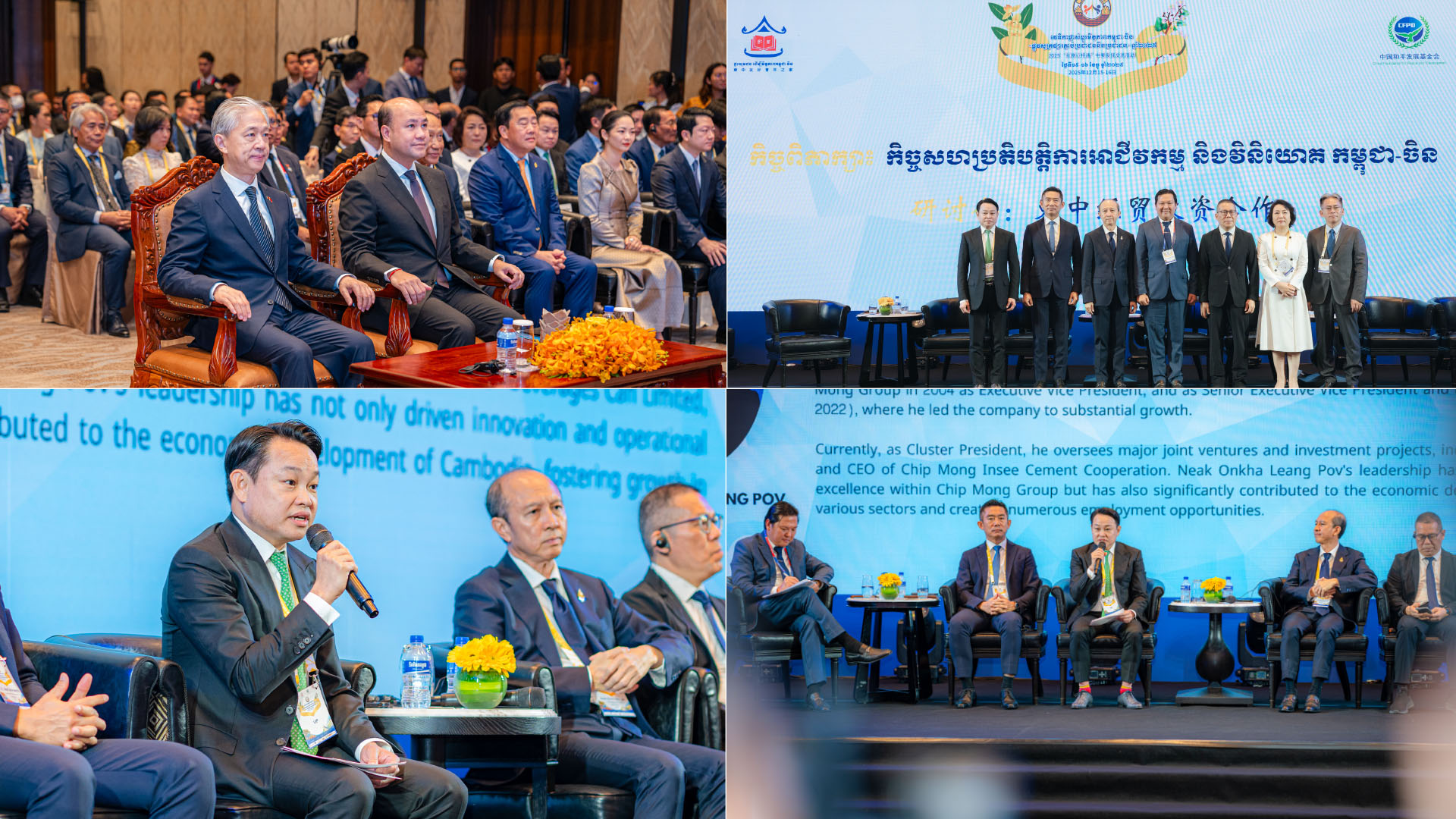 អ្នកឧកញ៉ា លាង ពៅ អគ្គនាយកពហុពាណិជ្ជកម្មក្រុមហ៊ុន ជីប ម៉ុង បានបង្ហាញពីការប្តេជ្ញាចិត្ត ក្នុងការចូលរួមជំរុញការសហការវិនិយោគរវាងសហគ្រិនកម្ពុជា និងសហគ្រិនចិន ជាពិសេសលើការនាំចេញផលិតផលកសិកម្មកែច្នៃទៅកាន់ទីផ្សារប្រទេសចិន ក្នុងឱកាសជាវាគ្មិនកិត្តិយស លើកិច្ចពិភាក្សាស្តីពីកិច្ចសហប្រតិបត្តិការអាជីវកម្ម និងវិនិយោគកម្ពុជា-ចិន។ ជាក់ស្តែង ក្រុមហ៊ុន ជីប ម៉ុង បានបណ្តាក់ទុនវិនិយោគ ២០០-៣០០ លានដុល្លារ ដើម្បីលើកស្ទួយវិស័យកសិកម្ម ជាពិសេសលើផលដំណាំស្វាយចន្ទី ដោយសហការជាមួយក្រុមហ៊ុនក្នុងស្រុក ក្នុងការជំរុញការកែច្នៃគ្រាប់ស្វាយចន្ទី។ មិនតែប៉ុណ្ណោះ ជីប ម៉ុង ផ្តល់នូវការចែករំលែកបទពិសោធន៍ផ្នែកផលិតកម្ម និងទីផ្សារតាមរយៈក្រុមហ៊ុន ខ្មែរ ប៊ែវើរីជីស និងជំនួយផ្នែកហិរញ្ញប្បទានពីធនាគារ ជីប ម៉ុង ដែលសុទ្ធតែជាពហុពាណិជ្ជកម្មរបស់ក្រុមហ៊ុនមេ ជីប ម៉ុង។