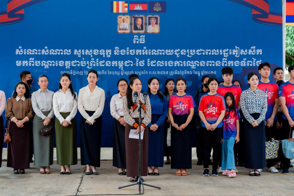 ក្នុងឱកាសនោះ លោកជំទាវបណ្ឌិត បានពាំនាំប្រសាសន៍ផ្តាំផ្ញើសួរសុខទុក្ខដ៏ខ្ពង់ខ្ពស់បំផុត និងដោយក្តីបារម្ភបំផុតរបស់សម្តេចអគ្គមហាសេនាបតីតេជោ ហ៊ុន សែន និងសម្តេចកិតិ្តព្រឹទ្ធបណ្ឌិត ប៊ុន រ៉ានី ហ៊ុនសែន ព្រមទាំងសម្តេចមហាបវរធិបតី ហ៊ុន ម៉ាណែត ជូនប្រជាពលរដ្ឋភៀសសឹកគ្រប់រូប និងថែមទាំងបាននាំយកអំណោយដ៏ថ្លៃថ្លាបំផុតរបស់ សម្តេចមហាបវរធិបតី ហ៊ុន ម៉ាណែត និងលោកជំទាវបណ្ឌិតផ្ទាល់ ប្រគល់ជូនជនភៀសសឹកគ្រប់ៗរូប ដើម្បីប្រើប្រាស់ និងសម្រួលជីវភាពរស់នៅប្រចាំថ្ងៃ ។