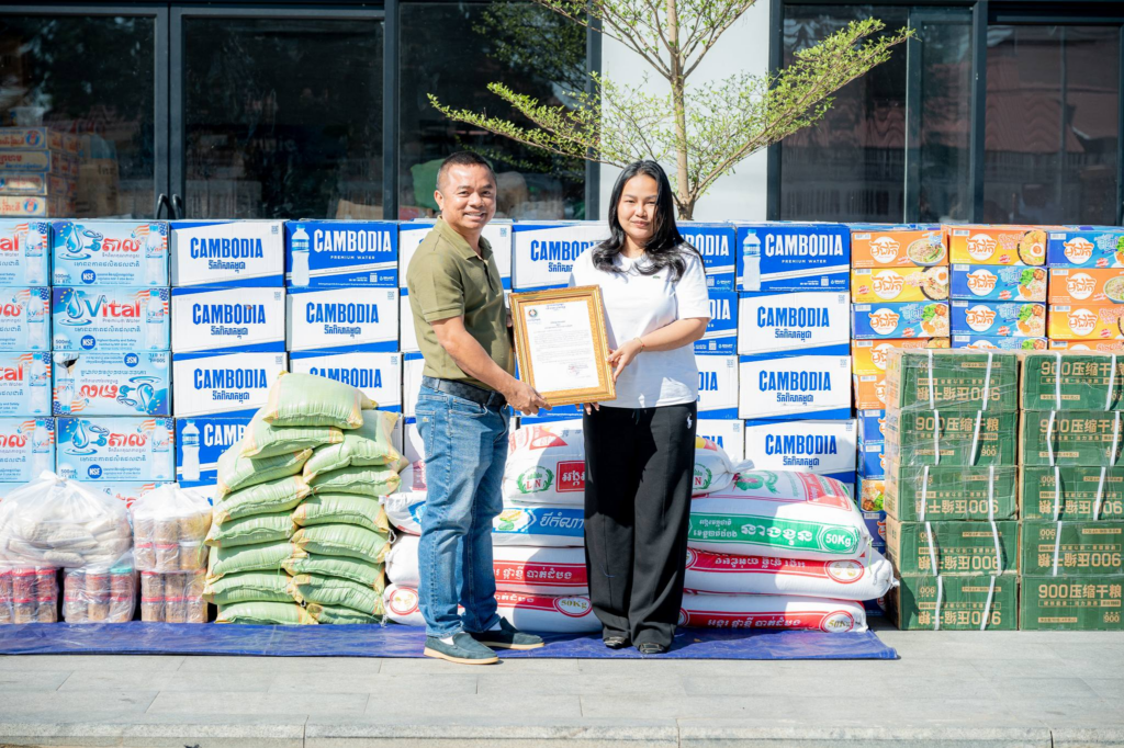 ក្នុងឱកាសប្រគល់ទទួលអំណោយសប្បុរសជននេះដែរ ក៏មានការអញ្ជើញទទួលដោយ លោកជំទាវ ហ៊ីង សុខលាភ ណុបរ័ត្ននិមល តំណាង ឯកឧត្តម នាយឧត្តមសេនីយ៍ កិត្តិសង្គហបណ្ឌិត ហ៊ីង ប៊ុនហៀង អគ្គមេបញ្ជាការរង កងយោធពលខេមរភូមិន្ទ និងជាមេបញ្ជាការបញ្ជាការដ្ឋានកងអង្គរក្ស។
