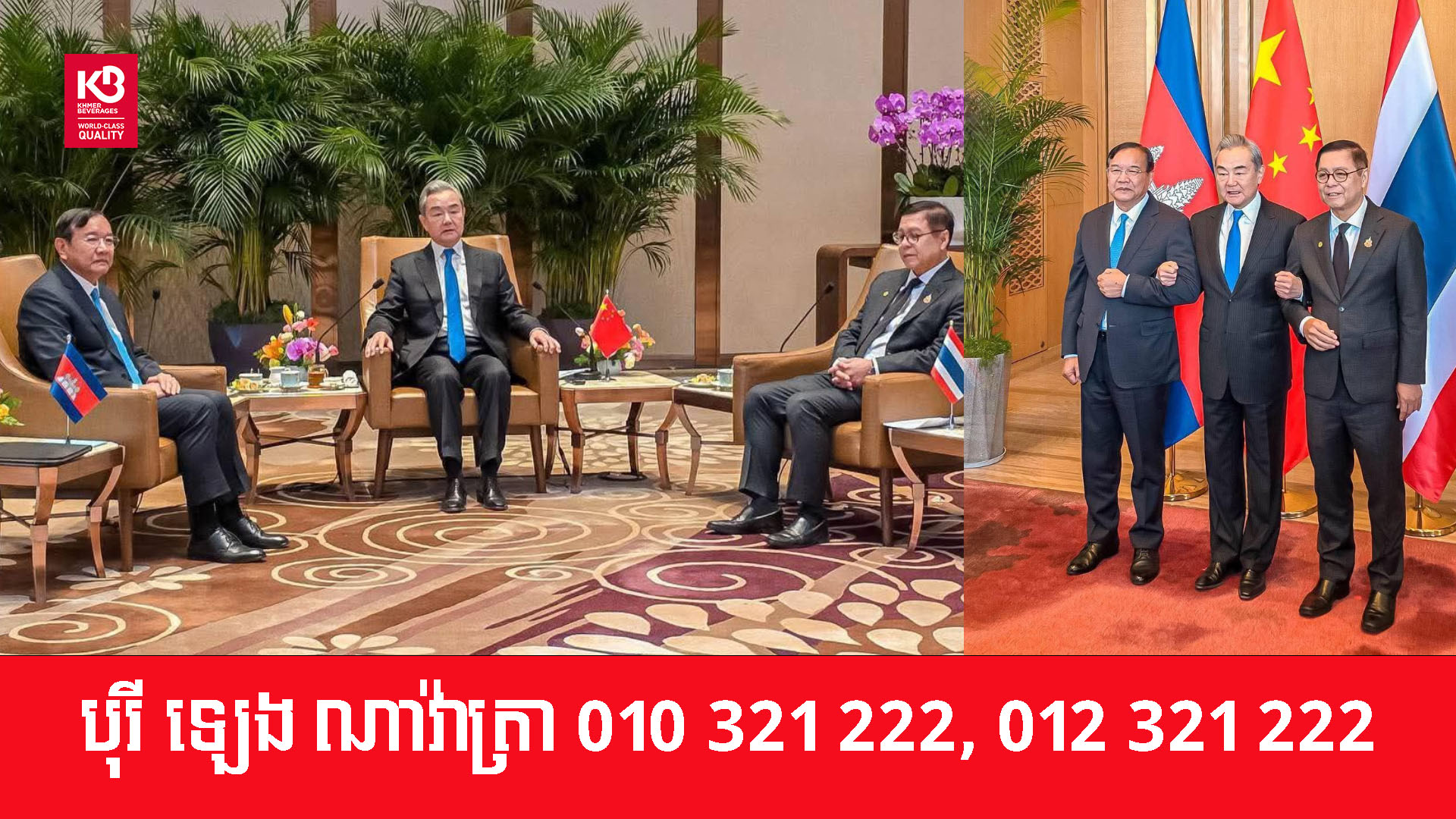 កិច្ចប្រជុំត្រីភាគី នៃរដ្ឋមន្ត្រីការបរទេស បានធ្វើឡើងតក្រោមវត្តមានលោក វ៉ាង យី រដ្ឋមន្ត្រីក្រសួងការបរទេស នៃសាធារណរដ្ឋប្រជាមានិតចិន, លោក ប្រាក់ សុខុន ឧបនាយករដ្ឋមន្ត្រី រដ្ឋមន្ត្រីក្រសួងការបរទេស និងសហប្រតិបត្តិការអន្តរជាតិកម្ពុជា ,ព្រមទាំងរដ្ឋមន្រ្តីការបរទេសថៃ។
