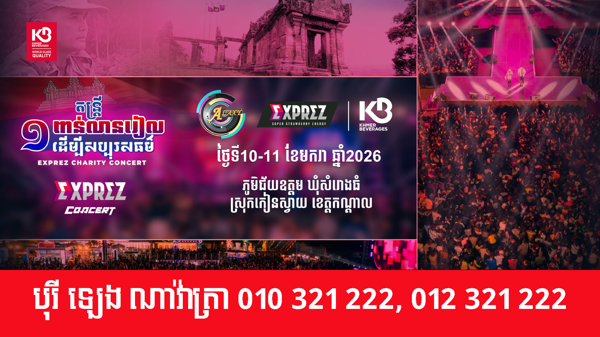 ស្មារតីរួបរួម ខ្មែរស្រឡាញ់ខ្មែរ ! Exprez Charity Concert សំឡេហខ្មែររួបរួម ក្នុងឆន្ទៈខ្មែរតែមួយ ។ កុំភ្លេចចូលរួមទស្សនាការប្រគំតន្រ្តី Exprez Charity Concert ទាំងអស់គ្នា ដោយជួបជាមួយកំពូលតារា ចម្រៀងល្បីៗជាច្រើនរយៈពេលពីរថ្ងៃជាប់គ្នា ៕