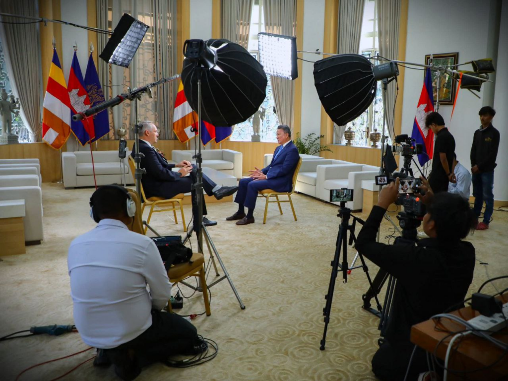 ភ្នាក់ងារសារព័ត៌មានសេដ្ឋកិច្ចលំដាប់ពិភពលោក Bloomberg បានមកធ្វើបទសម្ភាសន៍លោក ស៊ុន ចាន់ថុល ឧបនាយករដ្ឋមន្ត្រី អនុប្រធានទី១ ក្រុមប្រឹក្សាអភិវឌ្ឍន៍កម្ពុជា (ក.អ.ក.) អំពីបច្ចុប្បន្នភាពនៃបរិយាកាសវិនិយោគ ព្រមទាំងយុទ្ធសាស្ត្រពង្រឹងឧត្តមភាពប្រកួតប្រជែងក្នុងទីផ្សារធុរកិច្ចអន្តរជាតិរបស់កម្ពុជា។