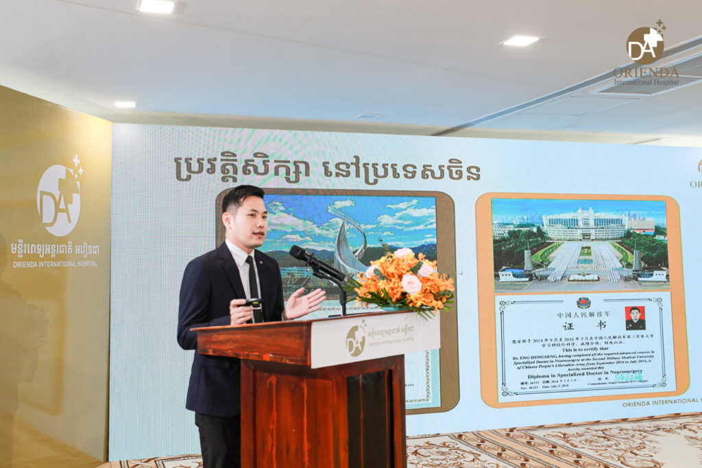 គណៈគ្រប់គ្រងនៃមន្ទីរពេទ្យអន្តរជាតិអរៀនដា បានថ្លែងថា៖ “ផ្នែកវះកាត់ប្រព័ន្ធប្រសាទខួរក្បាល មានវេជ្ជបណ្ឌិតឯកទេសមានបទពិសោធន៍ជាច្រើនឆ្នាំ មានសមត្ថភាពខ្ពស់អាចព្យាបាល និងវះកាត់បញ្ហាខួរក្បាលជាច្រើនជូនដល់អ្នកជំងឺ ជាមួយគ្រឿងបរិក្ខារទំនើបៗ និងវេជ្ជបណ្ឌិត បានបញ្ចប់ការសិក្សាឯកទេសមកពីប្រទេសចិន និងវគ្គបណ្ដុះបណ្ដាលមកពីប្រទេសជប៉ុន បទពិសោធន៍ជាង 10ឆ្នាំ លើការវះកាត់ និងពិគ្រោះព្យាបាលអ្នកជំងឺ រហូតទៅដល់ 10,000ករណី!”