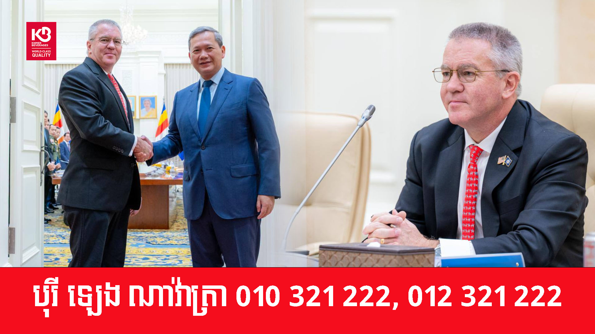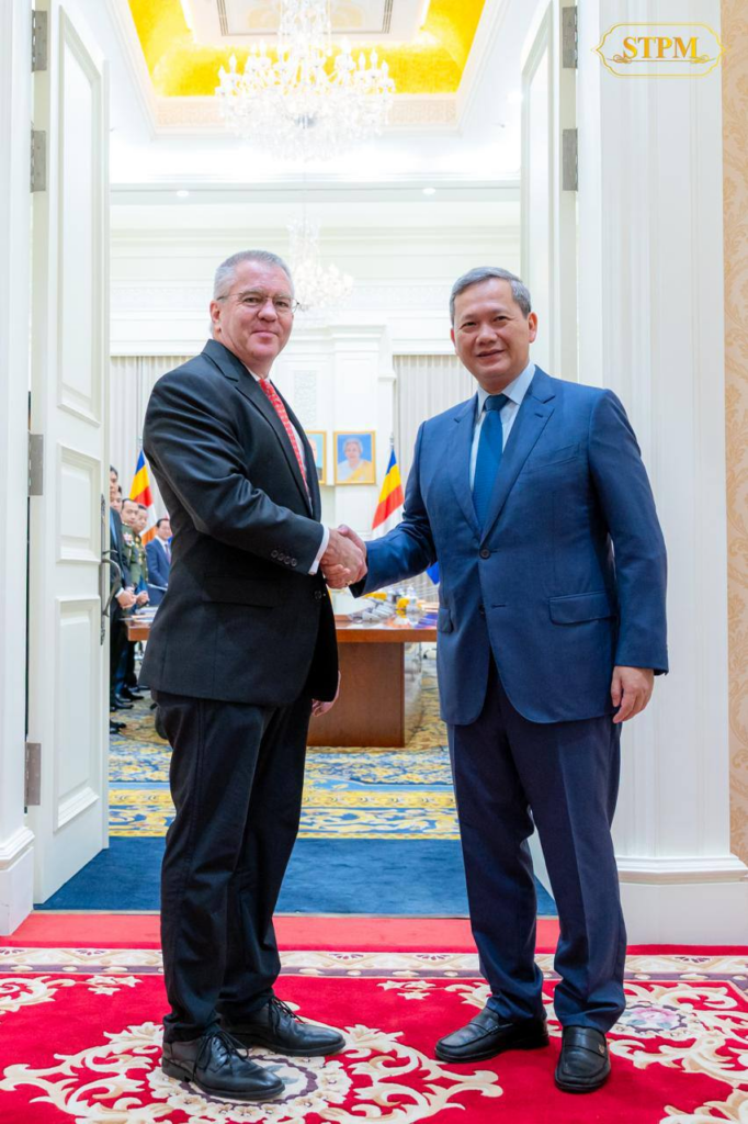កាលពីព្រឹកថ្ងៃទី១០ ខែមករា ឆ្នាំ២០២៦   សម្តេចធិបតី ហ៊ុន ម៉ាណែត នាយករដ្ឋមន្ត្រីនៃព្រះរាជាណាចក្រកម្ពុជា បានអនុញ្ញាតឱ្យ លោក Michael George DeSombre ឧបការីរដ្ឋមន្ត្រីការបរទេសសហរដ្ឋអាម៉េរិក ទទួលបន្ទុកតំបន់អាស៊ីបូព៌ា និងប៉ាស៊ីហ្វីក ចូលជួបសម្តែងការគួរសម និងពិភាក្សាការងារ។