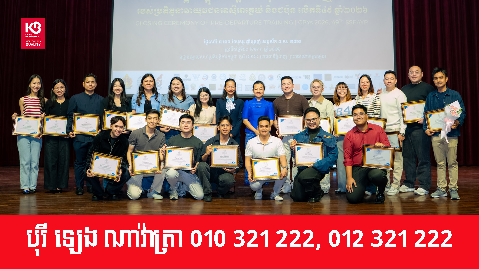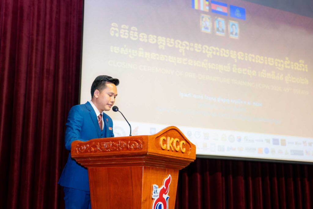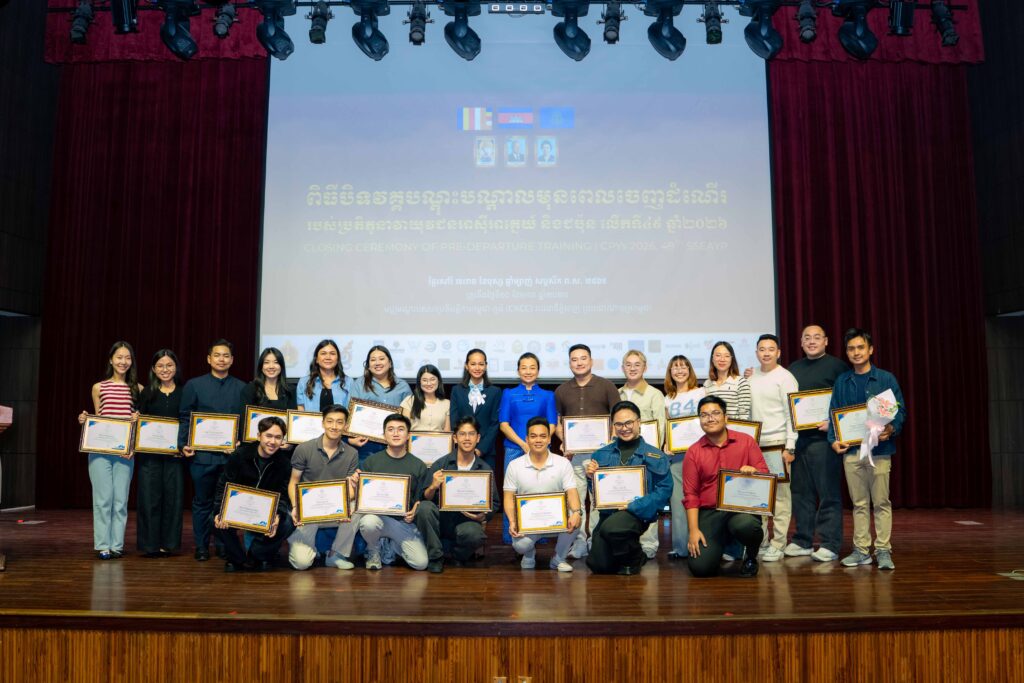 ប្រតិភូនាវាយុវជនកម្ពុជា បានបង្ហាញសមត្ថភាព ក្នុងពិធីបិទវគ្គបណ្តុះបណ្តាលមុនចេញដំណើរ របស់ប្រតិភូយុវជនកម្ពុជា នៃកម្មវិធីនាវាយុវជនអាស៊ីអាគ្នេយ៍ និងជប៉ុន លើកទី៤៩ ឆ្នាំ២០២៦ ដែលប្រព្រឹត្តទៅនាថ្ងៃទី១០ ខែមករា ឆ្នាំ២០២៦ ក្នុងរាជធានីភ្នំពេញ បន្ទាប់ពីបានឆ្លងកាត់ការហ្វឹកហាត់យ៉ាងស្រាកស្រាន្ដអស់រយៈពេលជាច្រើនសប្តាហ៍កន្លងមក។
