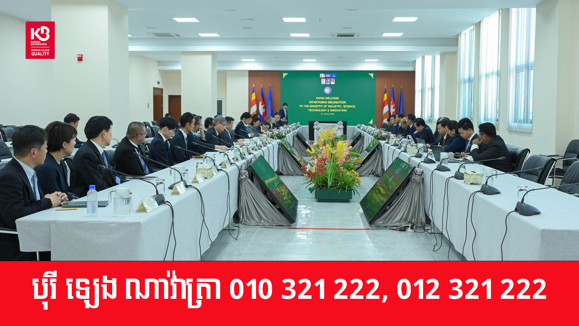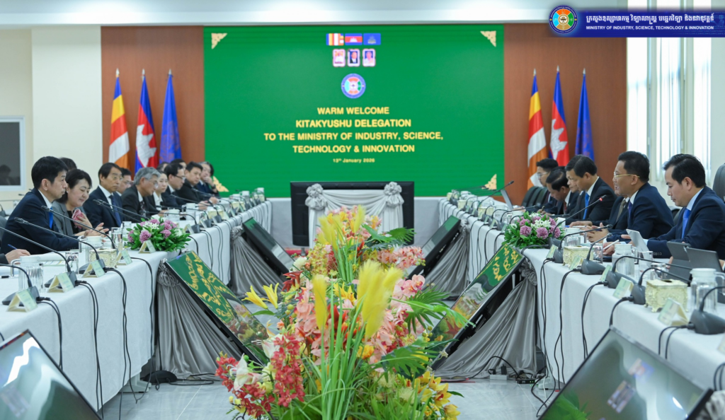 គណៈប្រតិភូក្រុងគីតាគ្យូស៊ូ ប្រទេសជប៉ុន បានបង្ហាញ បំណងពង្រីកប្រតិបត្តិការអាជីវកម្មទឹកស្អាតរបស់ខ្លួននៅកម្ពុជា។ តាមរយៈជំនួបកាលពីថ្ងៃទី១៣ ខែមករា ឆ្នាំ២០២៦ រវាង លោក ហែម វណ្ណឌី រដ្ឋមន្ត្រីក្រសួងឧស្សាហកម្ម វិទ្យាសាស្ត្រ បច្ចេកវិទ្យា និងនវានុវត្តន៍ ជាមួយ លោក Eguchi Tetsuro អភិបាលរងទីក្រុងគីតាគ្យូស៊ូ បានឱ្យដឹងថា គណៈប្រតិភូក្រុងគីតាគ្យូស៊ូ ប្រទេសជប៉ុន បានបង្ហាញចំណាប់អារម្មណ៍កាន់តែខ្លាំងរបស់វិស័យឯកជនជប៉ុនក្នុងអាជីវកម្មទឹកស្អាតនៅកម្ពុជា។