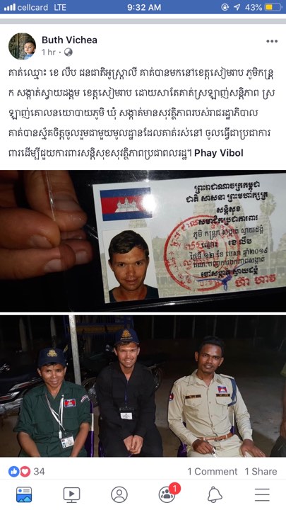 ដោយ ស្រលាញ់គោលនយោបាយភូមិ ឃុំ សង្កាត់មានសុវត្ថិភាព របស់រដ្ឋាភិបាល មានបរទេសម្នាក់ សុខចិត្ត សុំអាជ្ញាធរ ធ្វើជាប្រជាការពារ នេះតាមរយៈFacebook ឈ្មោះ Buth Vichea ធ្វើឲ្យមហាជនកោតសរសេរគ្រប់គ្នា។