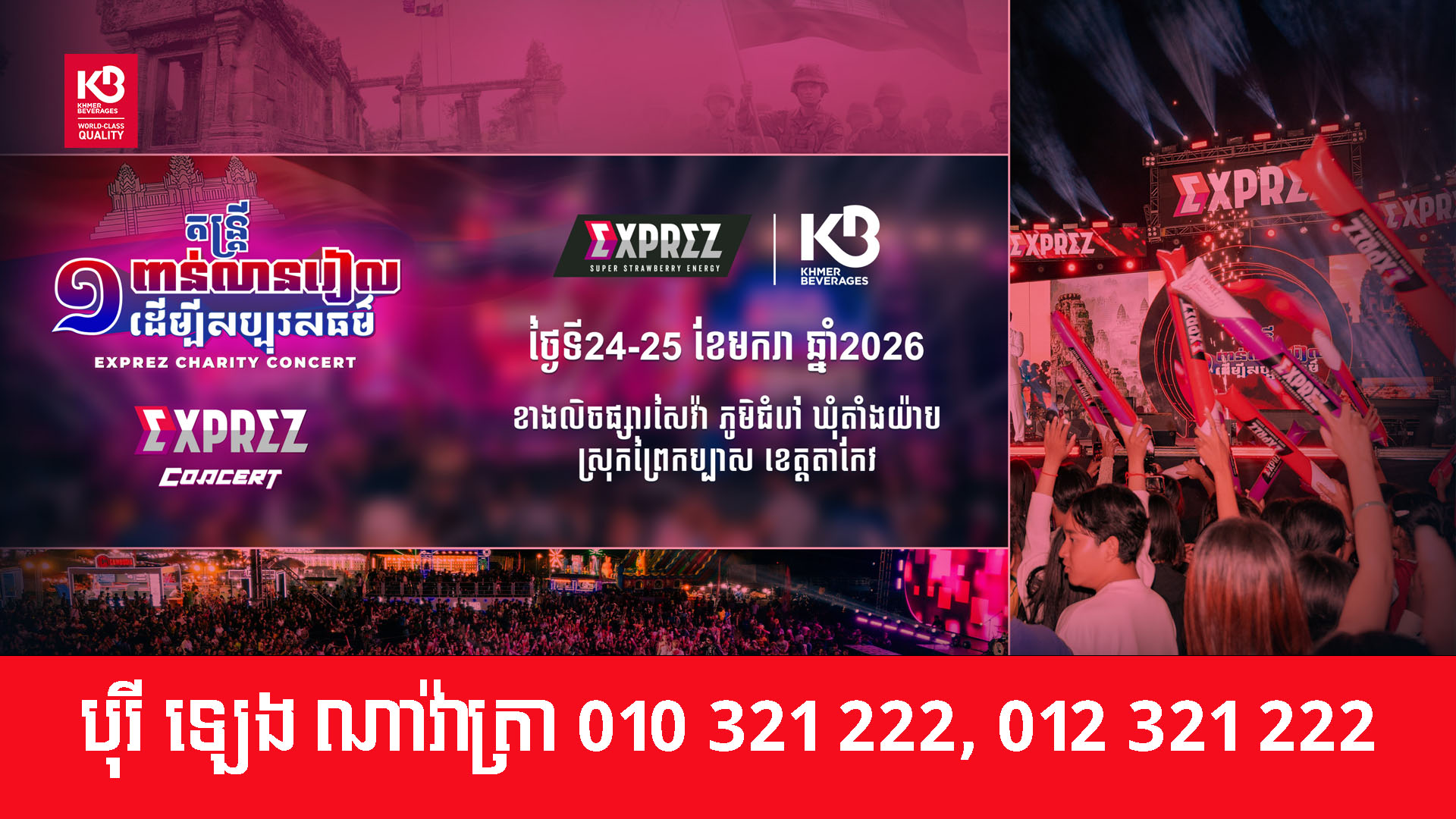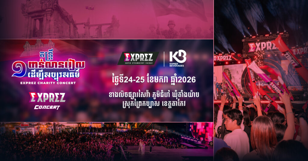សម្រាប់ព្រឹត្តិការណ៍ប្រគំតន្រ្តីសប្បុរសធម៌ EXPREZ CHARITY CONCERT ដែលនឹងរៀបចំឡើងនៅចុងសប្តាហ៍នេះ មានរយៈពេល២ថ្ងៃជាប់ៗគ្នា ដែលស្ថិតនៅខាងលិចផ្សារសៃវ៉ា ភូមិជំរៅ ឃុំតាំងយ៉ាប ស្រុកព្រៃកប្បាស ខេត្តតាកែវ ។ សម្រាប់ថ្ងៃទី ២៤ ខែ មករា ឆ្នាំ ២០២៦ ជួបជាមួយកំពូលតារាចម្រៀងខេមរៈ សិរីមន្ត ,លោក ខេម , អ្នកនាង ខាត់ សួស្តី និងតារាចម្រៀងជាច្រើនរូបទៀត ។ អ្វីដែលកាន់តែពិសេសលើសពីនេះទៅទៀត នៅថ្ងៃទី ២៥ ខែ មករា ឆ្នាំ ២០២៦ ជួបជាមួយកំពូលតារាចម្រៀង ព្រាប សុវត្ថិ ,កញ្ញា តន់ ចន្ទសីម៉ា និងកូនប្រុសទាំងពីររបស់កំពូលតារាចម្រៀង ព្រាប សុវត្ថិ រួមជាមួយតារាចម្រៀងវ័យក្មេងជាច្រើនរូបទៀត ។