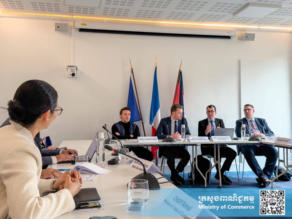 នេះបើតាមរយៈជំនួប រវាង លោកស្រី ចម និម្មល រដ្ឋមន្រ្តីក្រសួងពាណិជ្ជកម្ម ជាមួយលោក François Corbin អនុប្រធានចលនាសហគ្រាសបារាំង MEDEF International និងតំណាងក្រុមហ៊ុនបារំាងធំៗចំនួន ៦ កាលពីថ្ងៃទី២៣ ខែមករា ឆ្នាំ២០២៦។