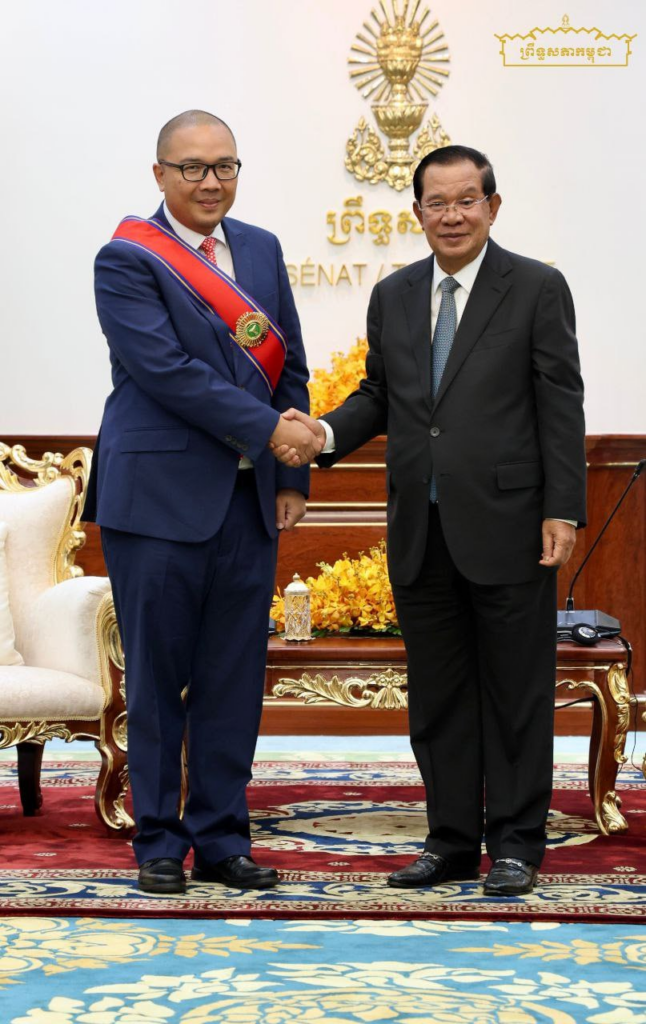 សម្តេចតេជោ  ហ៊ុន សែន ប្រធានព្រឹទ្ធសភា នៃព្រះរាជាណាចក្រកម្ពុជា បានបំពាក់គ្រឿងឥស្សរិយយស «សហមេត្រី» ថ្នាក់ មហាសេរីវឌ្ឍន៍ ជូនឯកឧត្តមឯកអគ្គរដ្ឋទូតនៃសាធារណរដ្ឋឥណ្ឌូណេស៊ី ចំពោះការខិតខំរួមប្រឹងប្រែងរបស់ឯកឧត្តមនាពេលកន្លងមក។
