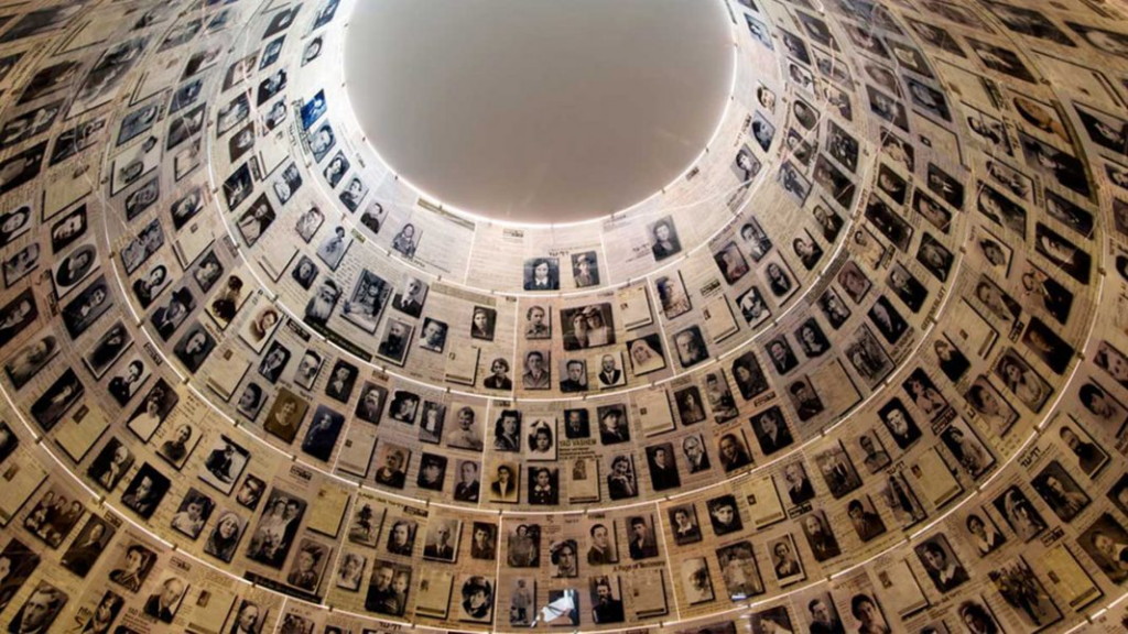 Photographs of Jewish victims of the Holocaust, displayed at the Yad Vashem