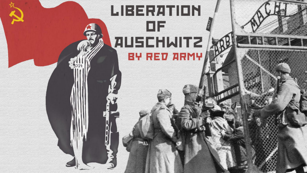 A painting depicting the Soviet Army liberating the Nazi Auschwitz concentration