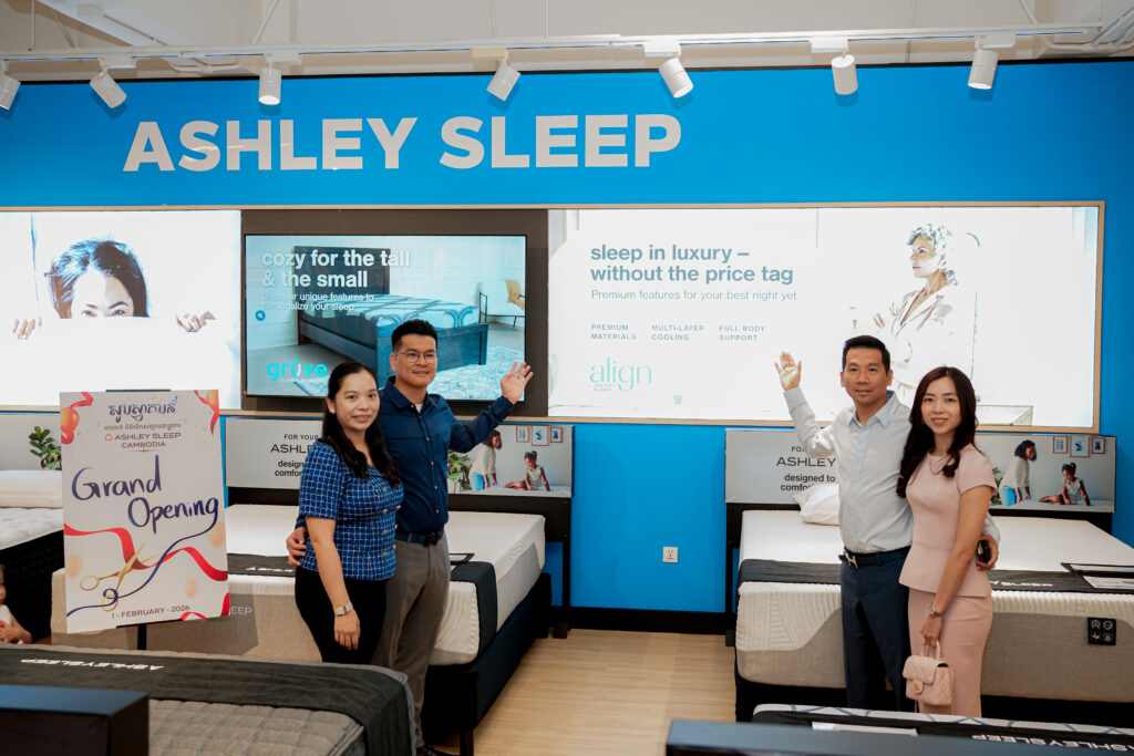 ក្រុមហ៊ុន Ashley Furniture HomeStore Cambodia បានរៀបចំពិធីសម្ពោធជាផ្លូវការ ដើម្បីប្រកាសដំណើរការប្រេនបន្ថែមចំនួន ២ រួមមាន Ashley Sleep Cambodia និង Ashley Outlet Cambodia ដែលជាជំហានថ្មីដ៏សំខាន់ ក្នុងការពង្រឹងបទពិសោធន៍រស់នៅ និងការគេងប្រកបដោយគុណភាព សម្រាប់អតិថិជននៅកម្ពុជា។