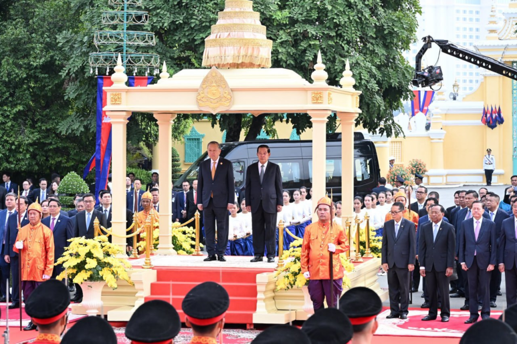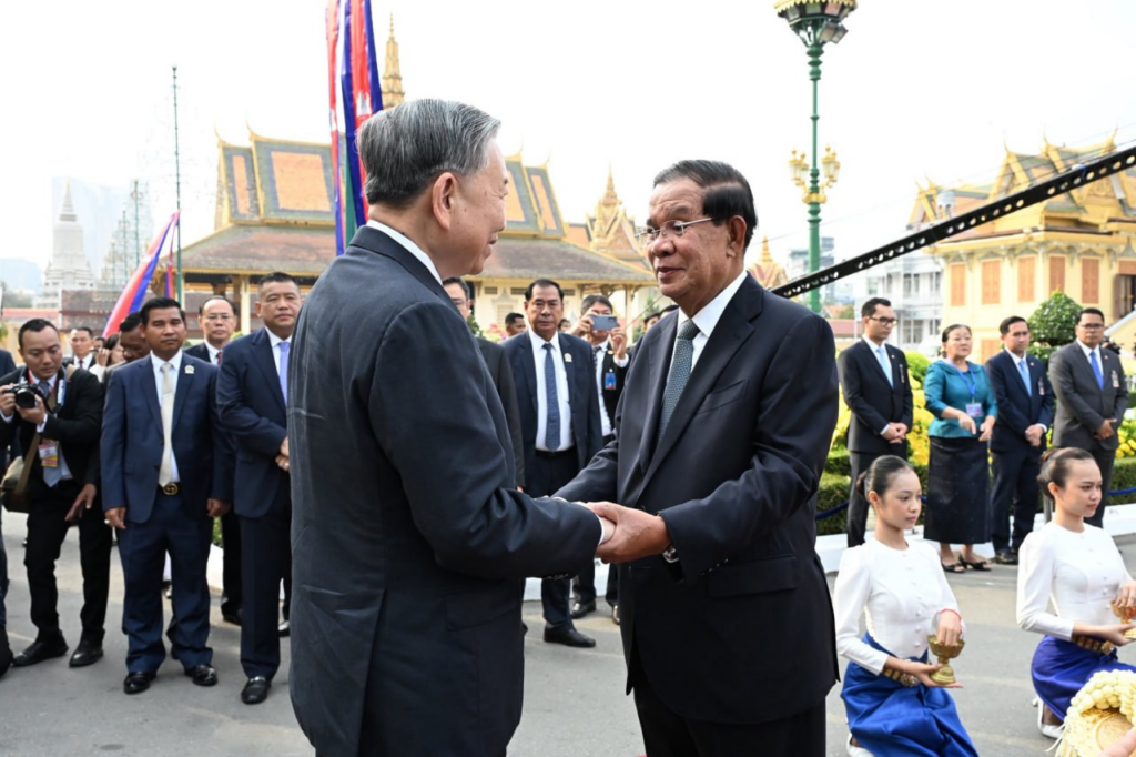 សម្ដេចតេជោ ហ៊ុន សែន ប្រធានព្រឹទ្ធសភានៃព្រះរាជាណាចក្រកម្ពុជា បានអញ្ជើញជាព្រះរាជតំណាងដ៏ខ្ពង់ខ្ពស់បំផុត របស់ព្រះករុណាព្រះបាទសម្ដេចព្រះបរមនាថ នរោត្តម សីហមុនី ព្រះមហាក្សត្រកម្ពុជា ទទួលបដិសណ្ឋារកិច្ចស្វាគមន៍ផ្លូវរដ្ឋជូន លោក តូ ឡឹម អគ្គលេខាធិការបក្សកុម្មុយនីស្តវៀតណាម ក្នុងឱកាសដែល លោក អញ្ជើញបំពេញទស្សនកិច្ចផ្លូវរដ្ឋនៅកម្ពុជា។