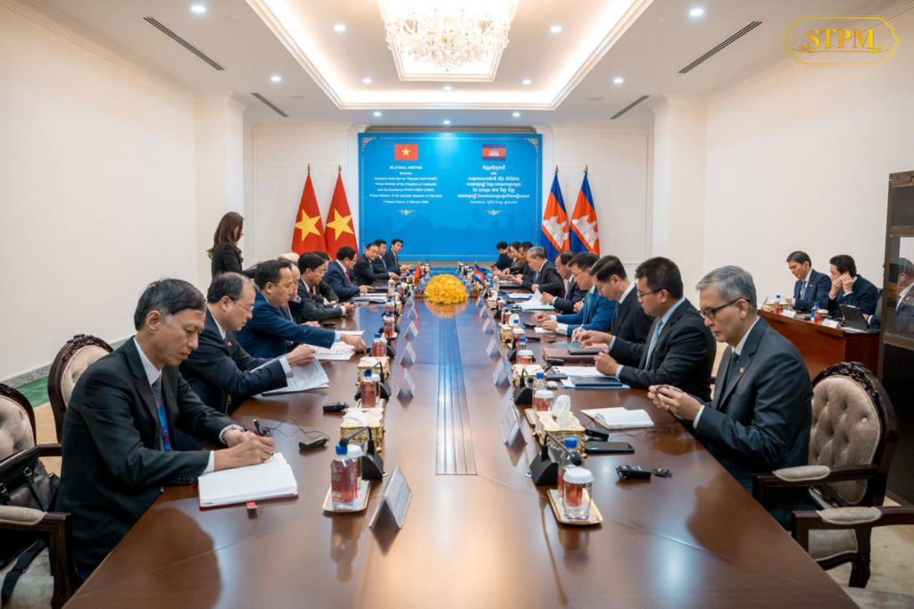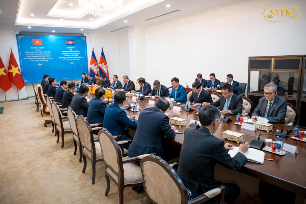 កាលពីរសៀលថ្ងៃទី០៦ ខែកុម្ភៈ ឆ្នាំ២០២៦ សម្តេចមហាបវរធិបតី ហ៊ុន ម៉ាណែត នាយករដ្ឋមន្រ្តី នៃព្រះរាជាណាចក្រកម្ពុជា បានទទួលជួបពិភាក្សាការងារជាមួយ លោក ផាម មិញជិញ (PHAM Minh Chinh) នាយករដ្ឋមន្ត្រី នៃសាធារណរដ្ឋសង្គមនិយមវៀតណាម នៅវិមាន៧មករា ក្នុងឱកាសដែលលោកនាយករដ្ឋមន្ត្រីវៀតណាម បានដឹកនាំគណៈប្រតិភូ អញ្ជើញចូលរួមកិច្ចប្រជុំរវាងថ្នាក់ដឹកនាំគណបក្សប្រជាជនកម្ពុជា, ថ្នាក់ដឹកនាំគណបក្សកុម្មុយនីស្តវៀតណាម និងថ្នាក់ដឹកនាំគណបក្សប្រជាជនបដិវត្តន៍ឡាវ នៅរាជធានីភ្នំពេញ ព្រះរាជាណាចក្រកម្ពុជា ពីថ្ងៃទី៦ដល់ថ្ងៃទី៧ ខែកុម្ភៈ ឆ្នាំ២០២៦។