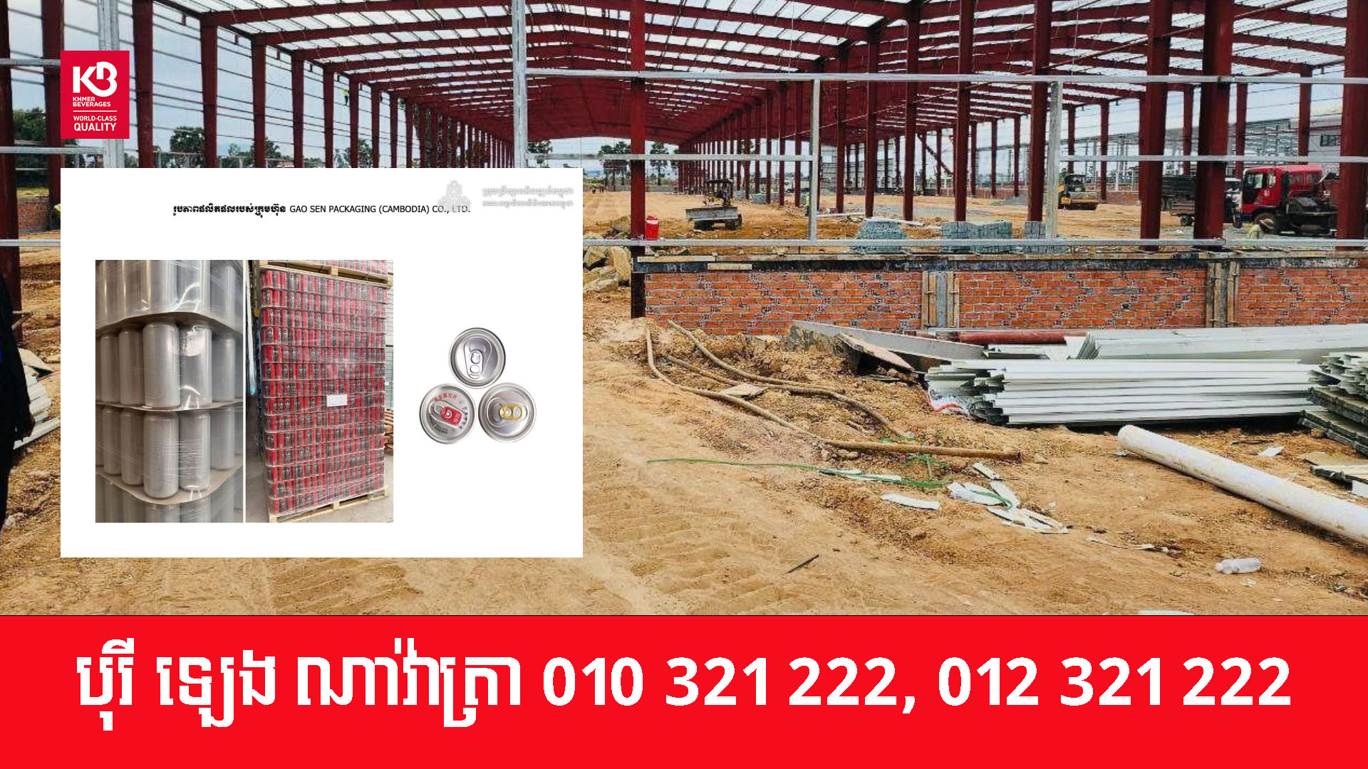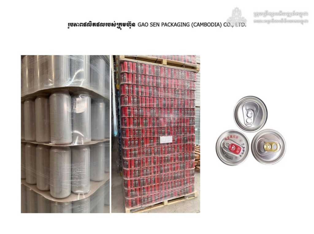 សូមជម្រាបដែរថា គម្រោងវិនិយោគបង្កើត រោងចក្រផលិតសំបកកំប៉ុង និងគម្របកំប៉ុង (ពីអាលុយមីញ៉ូម និងដែក) ដែលមានទីតាំងស្ថិតនៅភូមិអូរតាពូង ឃុំរកាកោះ ស្រុកគងពិសី ខេត្តកំពង់ស្ពឺ នឹងវិនិយោគដោយក្រុមហ៊ុន GAO SEN PACKAGING (CAMBODIA) CO., LTD.៕ អត្ថបទ៖ហ្សាលីន