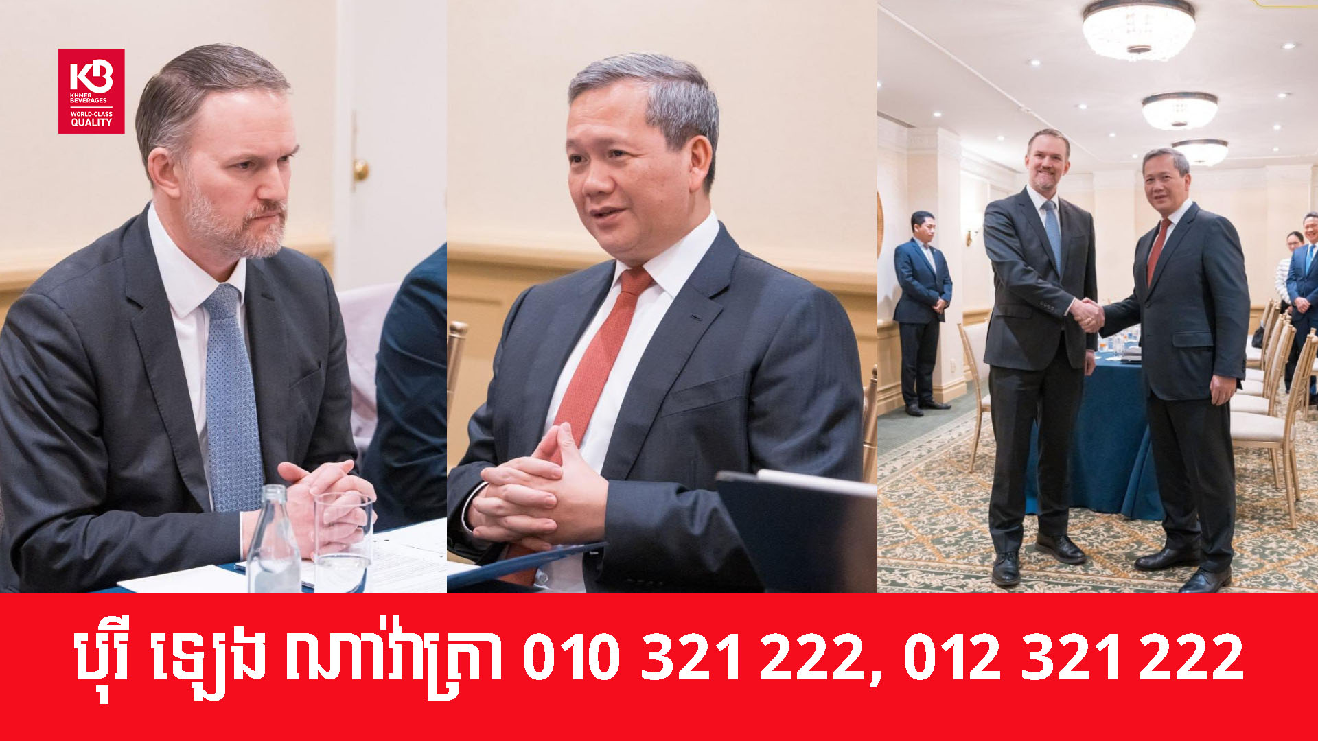 នេះតាមជំនួបពិភាក្សាការងាររវាងសម្ដេចធិបតី ហ៊ុន ម៉ាណែត នាយករដ្ឋមន្ត្រី នៃកម្ពុជា ជាមួយឯកអគ្គរដ្ឋទូត Jamieson Greer តំណាងពាណិជ្ជកម្មសហរដ្ឋអាម៉េរិក ក្នុងឱកាសនៃការដឹកនាំគណៈប្រតិភូរាជរដ្ឋាភិបាលកម្ពុជាចូលរួមកិច្ចប្រជុំលើកដំបូងនៃក្រុមប្រឹក្សាសន្តិភាព (Board of Peace) នៅរដ្ឋធានីវ៉ាស៊ីនតោន សហរដ្ឋអាម៉េរិក នារសៀលថ្ងៃទី១៨ ខែកុម្ភៈ ឆ្នាំ២០២៦។