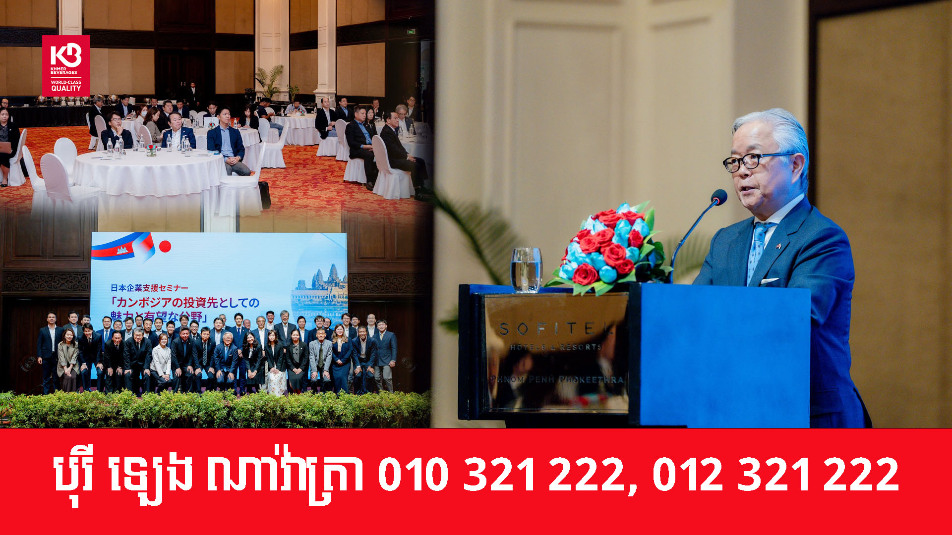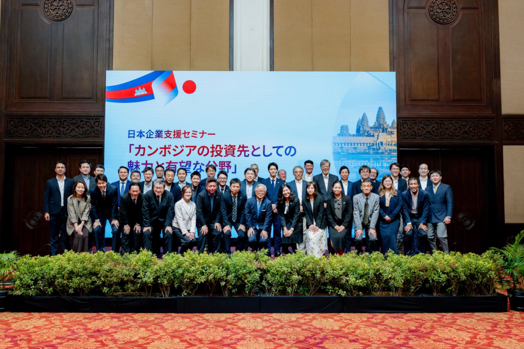 ស្ថានទូតជប៉ុនប្រចាំនៅព្រះរាជាណាចក្រកម្ពុជាបានរៀបចំ “សិក្ខាសាលាស្តីពីការវិនិយោគសម្រាប់ក្រុមហ៊ុនជប៉ុន” ដោយមានក្រុមហ៊ុនជប៉ុនប្រមាណ ១៧០ក្រុមហ៊ុន ចូលរួមតាមអនឡាញផង និងទីតាំងផ្ទាល់ផង កាលពីថ្ងៃទី២០ ខែកុម្ភៈ ឆ្នាំ២០២៦ នៅរាជធានីភ្នំពេញ។ នេះបើយោងតាមការឱ្យដឹងនៅលើបណ្ដាញសង្គមផ្លូវការរបស់ស្ថានទូតជប៉ុនប្រចាំនៅកម្ពុជា។
