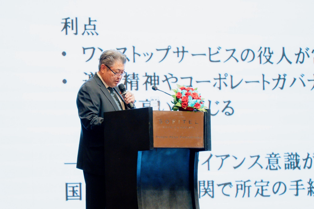 នៅក្នុងសិក្ខាសាលានោះ ឯកឧត្តមឯកអគ្គរាជទូត អ៊ូអ៊ិណុ អាត់ស៊ូស៊ី (UENO Atsushi) ឯកអគ្គរាជទូតជប៉ុនប្រចាំកម្ពុជា បានសម្តែងការរំពឹងទុកថា សិក្ខាសាលានេះនឹងក្លាយជាឱកាសមួយសម្រាប់ក្រុមហ៊ុនជប៉ុនដែលមានចំណាប់អារម្មណ៍ក្នុងការវិនិយោគនៅកម្ពុជា ក៏ដូចជាក្រុមហ៊ុនដែលមានវត្តមាននៅកម្ពុជារួចហើយ ដើម្បីពិចារណាលើការវិនិយោគថ្មី ឬពង្រីកការវិនិយោគដែលមានស្រាប់របស់ពួកគេ៕