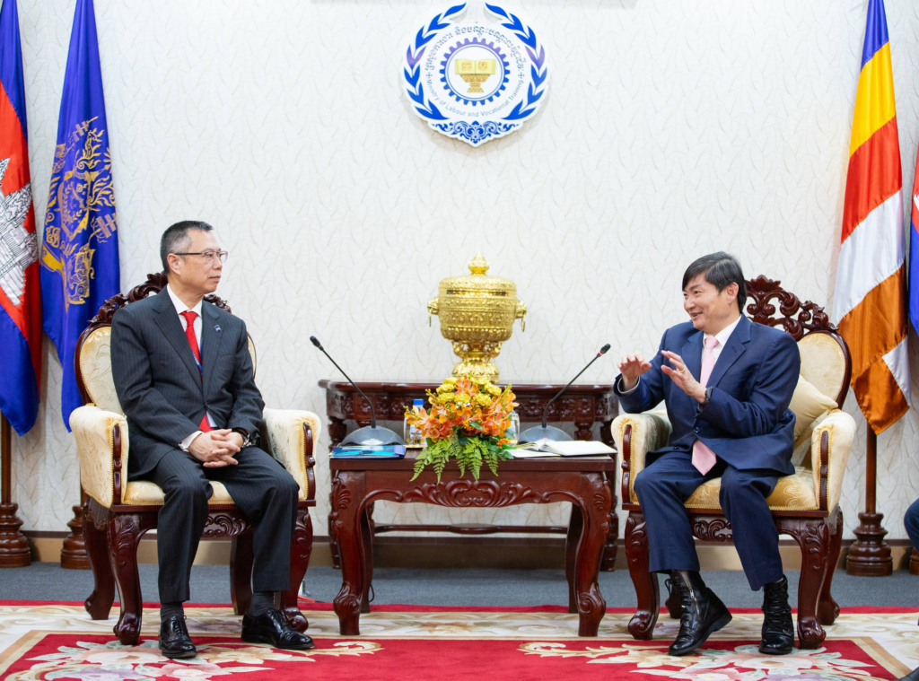 ការសហការបានធ្វើឡើងរវាង លោក ហេង សួរ រដ្ឋមន្ត្រីក្រសួងការងារ និងបណ្ដុះបណ្ដាលវិជ្ជាជីវៈ ជាមួយលោក Nianshan Zhang អគ្គនាយកនៃនាយកដ្ឋានប្រចាំតំបន់អាស៊ីអាគ្នេយ៍នៃធនាគារអភិវឌ្ឍន៍អាស៊ី (ADB) កាលពីរសៀលថ្ងៃទី២៥ ខែកុម្ភៈ ឆ្នាំ២០២៦។