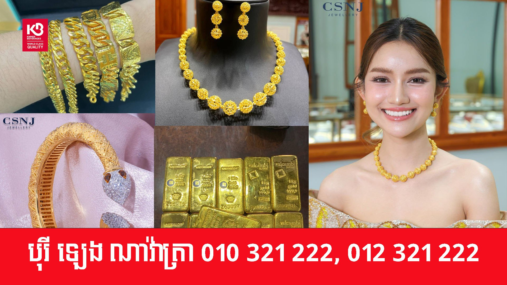 ហាងមាសពេជ្រ CSNJ មានលក់មាសពេជ្រជាច្រើនជម្រើស មានលក់ទាំងប្រភេទខ្សែកអ៊ីតាលី មាសគីឡូដុំ ត្បូងមានតម្លៃរបស់ខ្មែរគ្រប់ប្រភេទ។ ហាងនេះ មានអាស័យដ្ឋាននៅផ្ទះលេខ 39B&39C មហាវិថីអ្នកឧញ៉ាមហាភកី្តសប្បុរសភោគាធិបតី ហ៊ុននាង សង្កាត់ចាក់អង្រែក្រោម ខណ្ឌមានជ័យ រាជធានីភំ្នពេញ៕