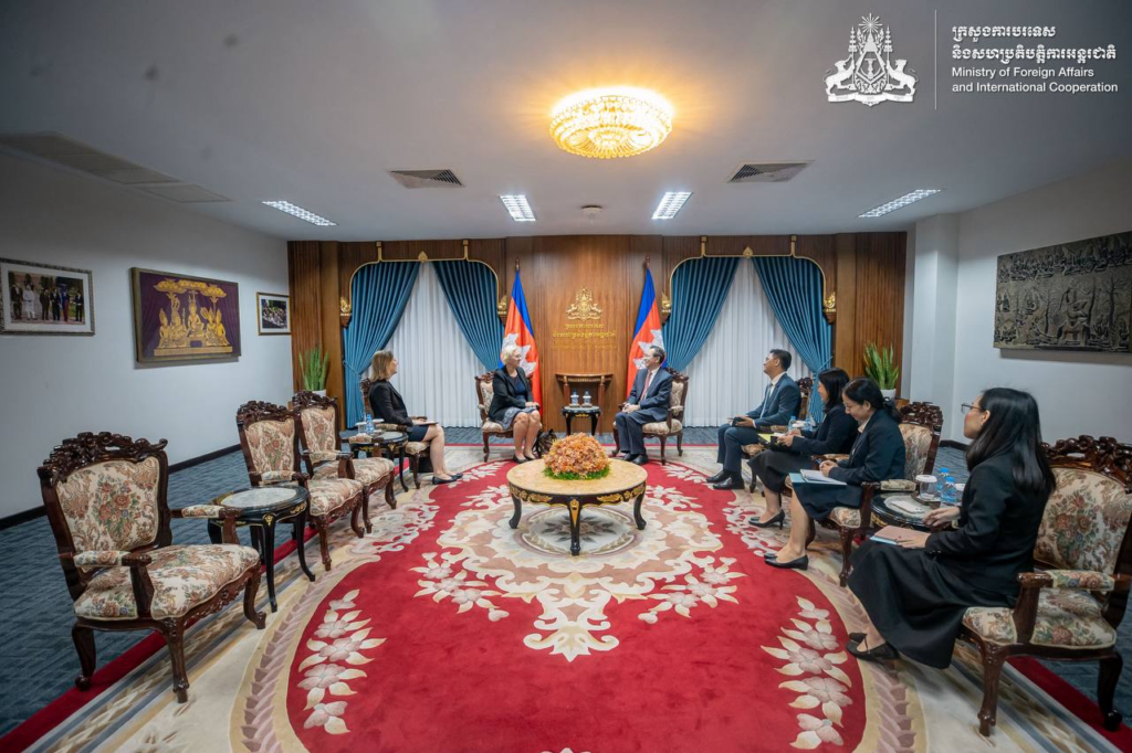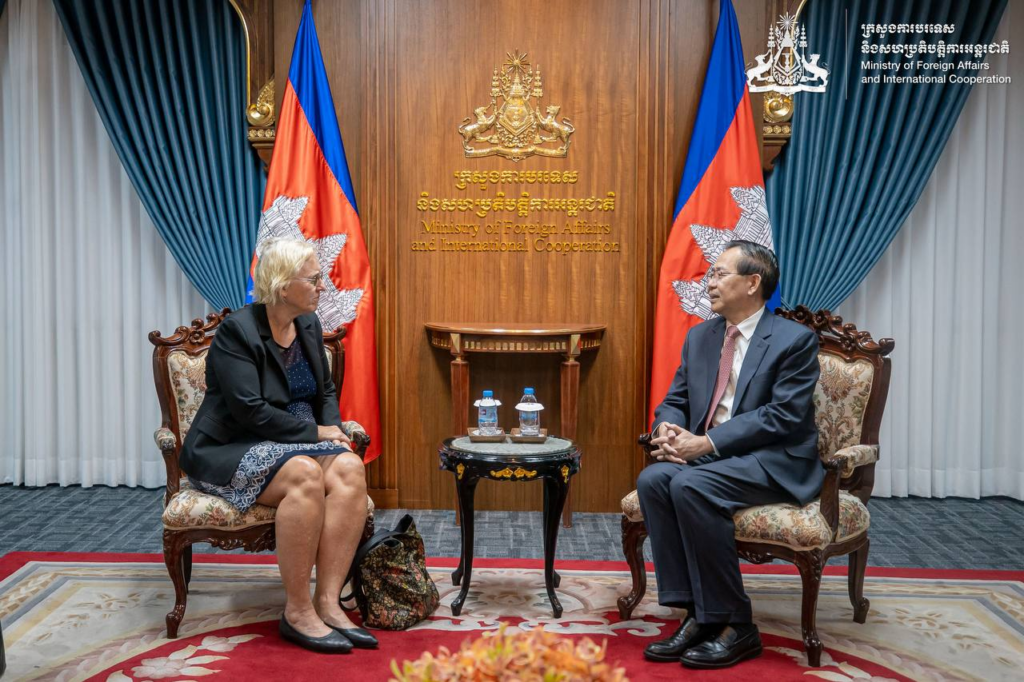លោក មាស គឹមហេង រដ្ឋលេខាធិការនៃក្រសួងការបរទេស និងសហប្រតិបត្តិការអន្តរជាតិ បានអនុញ្ញាតជូនលោកស្រី Astrid Emilie Helle ឯកអគ្គរាជទូតន័រវែសប្រចាំកម្ពុជា ចូលជួបពិភាក្សាការងារ នៅថ្ងៃទី១០ ខែមីនា ឆ្នាំ២០២៦ នៅទីស្តីការក្រសួង។