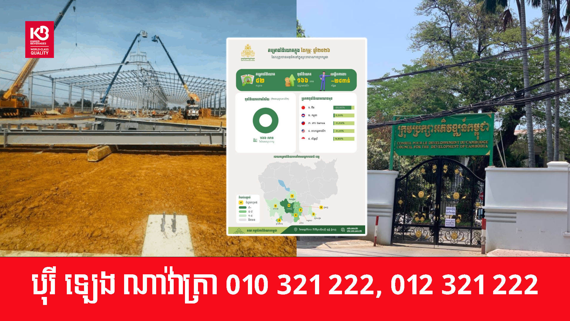 សូមជម្រាបដែរថា បើគិតរយៈពេល២ខែ ពោលគឺខែមករា និងខែកុម្ភៈ នៃដើមឆ្នាំ២០២៦ គម្រោងវិនិយោគចំនួន១០៥ គម្រោង ដែលមានទំហំទឹកប្រាក់ជាង៩៦៦ លានដុល្លារ ត្រូវបានក្រុមប្រឹក្សាអភិវឌ្ឍន៍កម្ពុជា (CDC) និងអនុគណៈកម្មាធិការវិនិយោគរាជធានី ខេត្ត (អ.គ.វ.រ.ខ.) អនុម័ត ដោយបង្កើតបានការងារបន្ថែមចំនួន៣៩ពាន់កន្លែង៕ អត្ថបទ៖ ហ្សាលីន