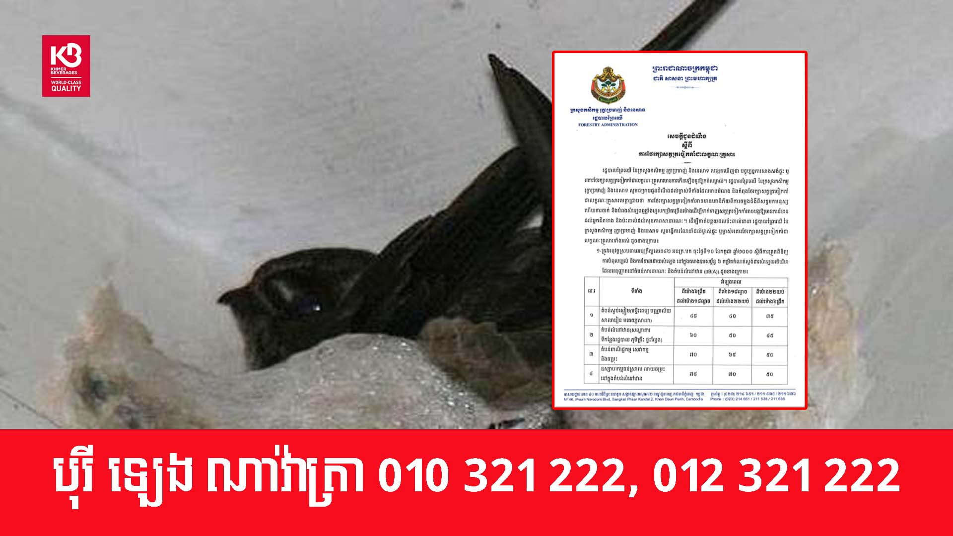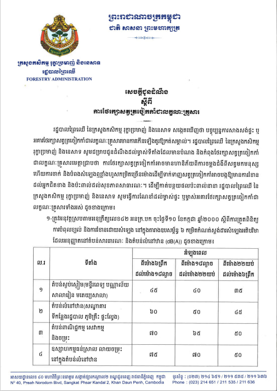 (ភ្នំពេញ)៖ បាលព្រៃឈើ នៃក្រសួងកសិកម្ម រុក្ខាប្រមាញ់ និងនេសាទ បានធ្វើការណែនាំដល់ម្ចាស់ផ្ទះ ឬម្ចាស់អគារថែរក្សាសត្វត្រចៀកកាំជាលក្ខណៈគ្រួសារ តាមដានជាប់ជានិច្ចសុខភាពសត្វ និងអនាម័យ ដើម្បីបង្ការជម្ងឺឆ្លង។