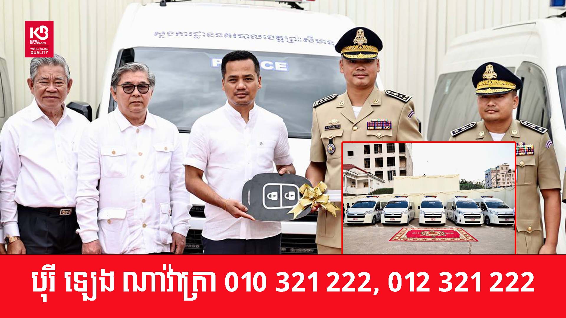 (ខេត្តព្រះសីហនុ)៖ ឯកឧត្តម ស សុខា ឧបនាយករដ្ឋមន្ត្រី រដ្ឋមន្ត្រីនៃក្រសួងមហាផ្ទៃ នៅថ្ងៃទី១២ ខែមីនានេះ បានប្រគល់រថយន្ត TOYOTA Hiace ចំនួន ៥គ្រឿង ដល់ស្នងការដ្ឋាននគរបាលខេត្តព្រះសីហនុ សម្រាប់បម្រើដល់ការបំពេញការងារប្រចាំថ្ងៃ។