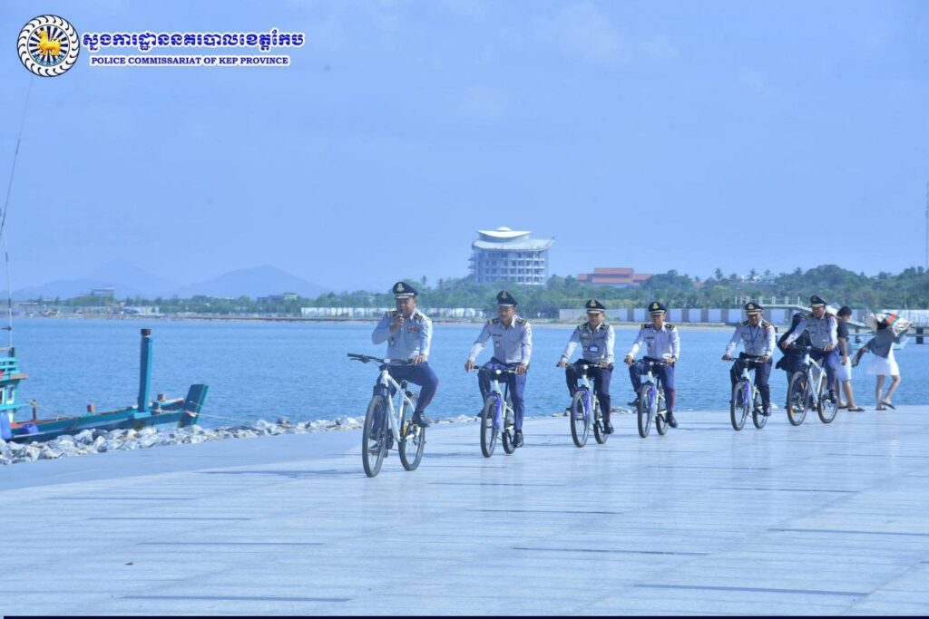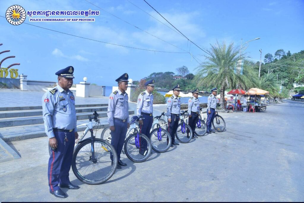 ស្នងការដ្ឋាននគរបាលខេត្តកែប បានប្រើប្រាស់មធ្យោបាយជិះកង់ល្បាត ដើម្បីរក្សាសន្តិសុខ សណ្ដាប់ធ្នាប់ និងសុវត្ថិភាព ជូនភ្ញៀវទេសចរជាតិ និងអន្តរជាតិដែលមកទស្សនា និងសម្រាកលំហែកាយក្នុងខេត្តកែប ខណៈពិភពលោកកំពុងជួបវិបត្តិប្រេងឡើងថ្លៃ។