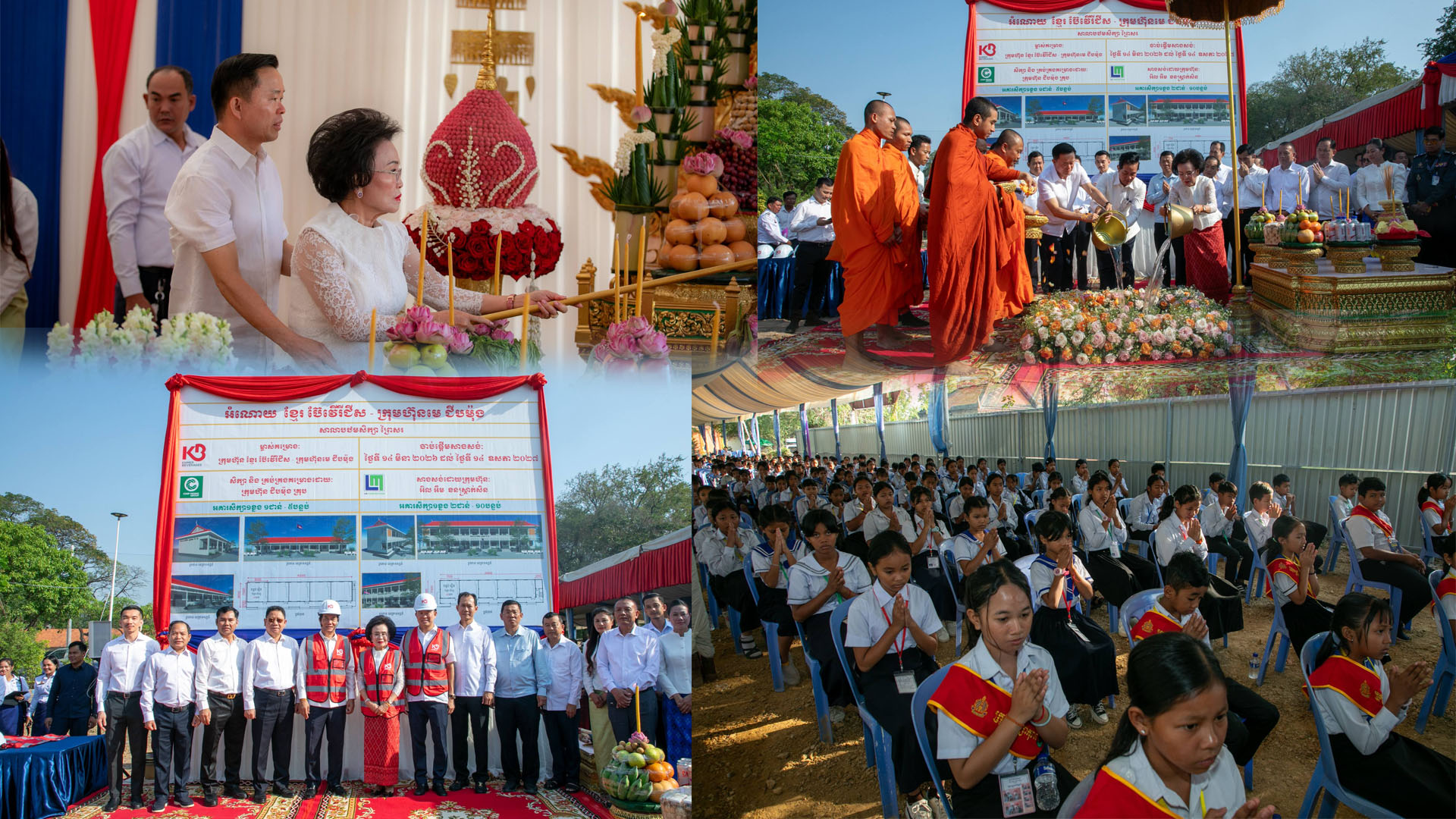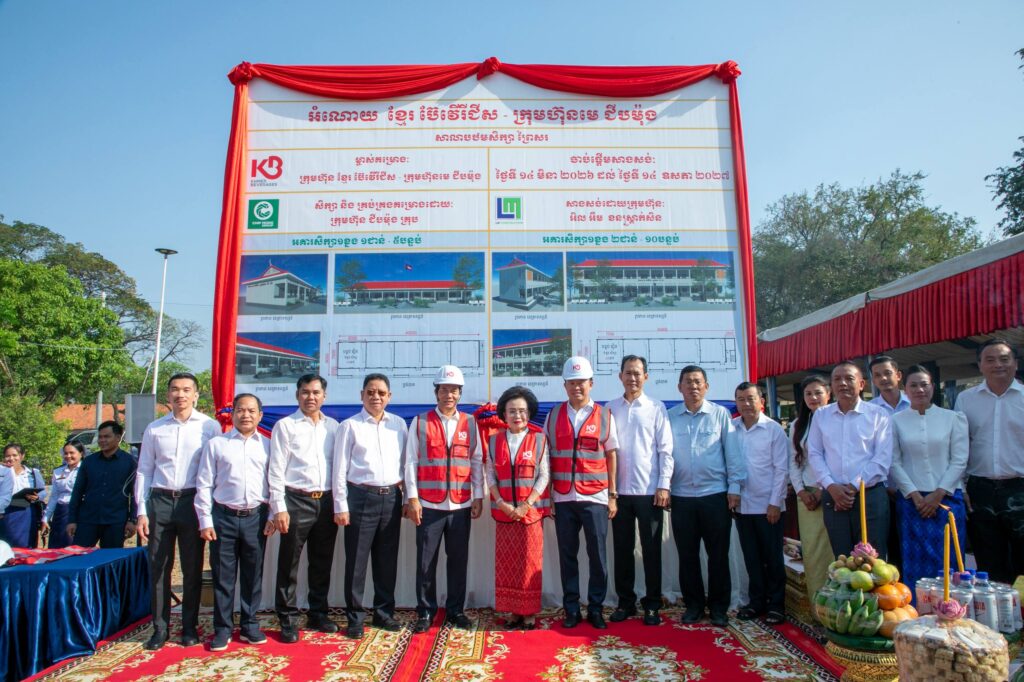 (ភ្នំពេញ)៖ ក្រោមអធិបតីភាពរបស់ឯកឧត្តម ឃួង ស្រេង អភិបាលរាជធានីភ្នំពេញ លោកអ្នកឧកញ៉ា ភាព ហៀក ស្ថាបនិកក្រុមហ៊ុន ជីប ម៉ុង និងអ្នកឧកញ៉ា លាង ម៉េង សហស្ថាបនិកក្រុមហ៊ុន ខ្មែរ ប៊ែវើរីជីស បានអញ្ជើញចូលរួមក្នុងពិធីក្រុងពាលី ជាមួយលោកគ្រូ អ្នកគ្រូ សិស្សានុសិស្ស និងមន្ត្រីរាជការជាច្រើនរូប ដើម្បីបើកការដ្ឋានសាងសង់អគារសិក្សា ១ ខ្នង កម្ពស់ ៣ ជាន់ មានចំនួន ១៥ បន្ទប់ ព្រមទាំងរបងសាលា នៅសាលាបឋមសិក្សាព្រៃស ស្ថិតនៅសង្កាត់ព្រៃស ខណ្ឌដង្កោ ដែលជាអំណោយរបស់ក្រុមហ៊ុន ខ្មែរ ប៊ែវើរីជីស ដែលជាពាណិជ្ជកម្មមួយក្រោមក្រុមហ៊ុនមេ ជីប ម៉ុង។