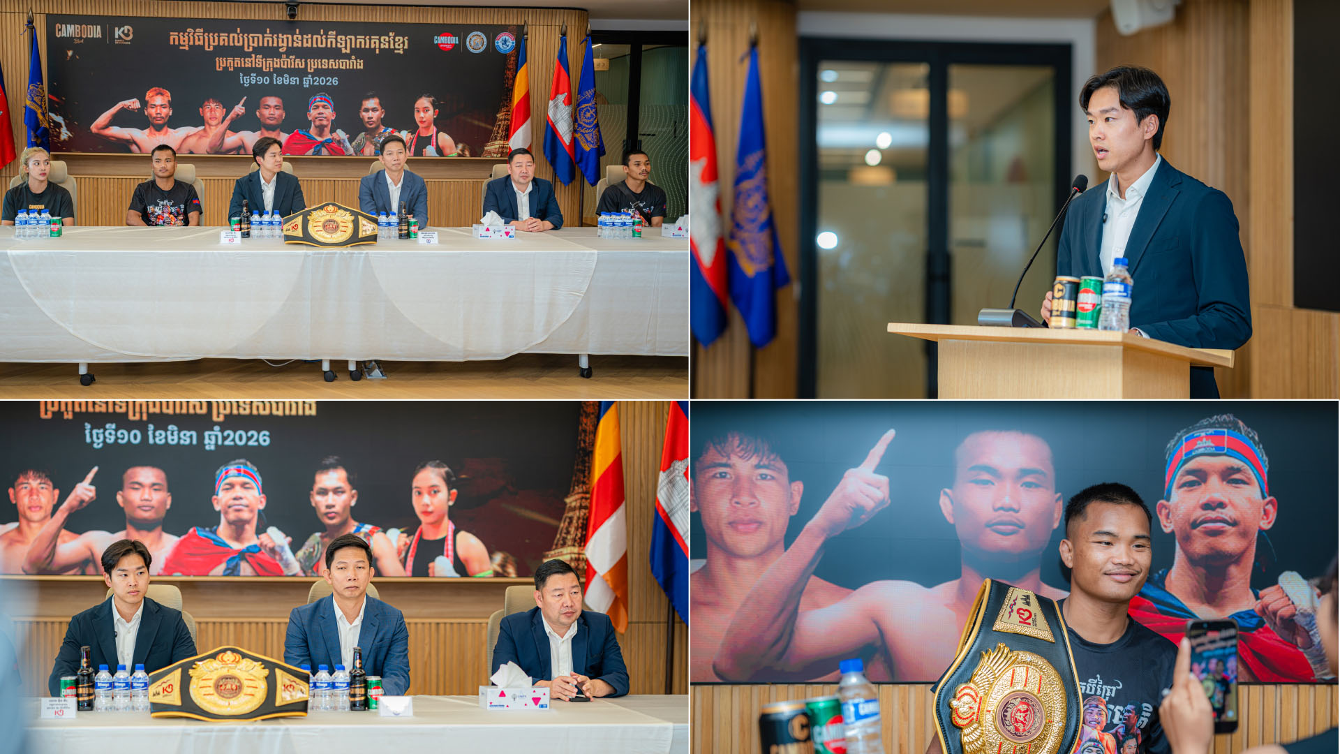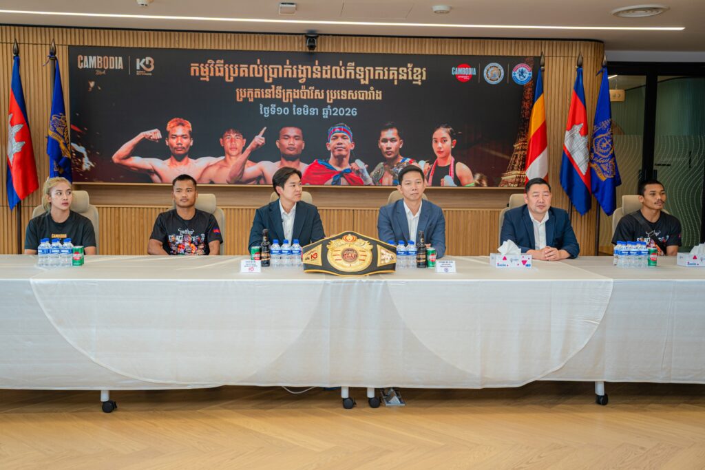 (ភ្នំពេញ)៖ ត្រលប់មកវិញជាមួយនឹងជ័យជំនះ នាំយកខ្សែក្រវាត់ជើងឯកគុនខ្មែរពីទ្វីបអឺរ៉ុប CAMBODIA BLACK និងភេសជ្ជៈប៉ូវកម្លាំង កម្ពុជា ប្រកាសឧបត្ថម្ភទឹកប្រាក់សរុប ៤៧ លានរៀល ដល់កីឡាករ-កីឡាការិនីទាំងអស់ដែលបានប្រកួតយកឈ្នះដៃគូក្នុងព្រឹត្តិការណ៍ប្រកួតដណ្តើមខ្សែក្រវាត់គុនខ្មែរប្រចាំទ្វីបអឺរ៉ុប ឆ្នាំ២០២៦ នៅទីក្រុងប៉ារីស ប្រទេសបារាំង។