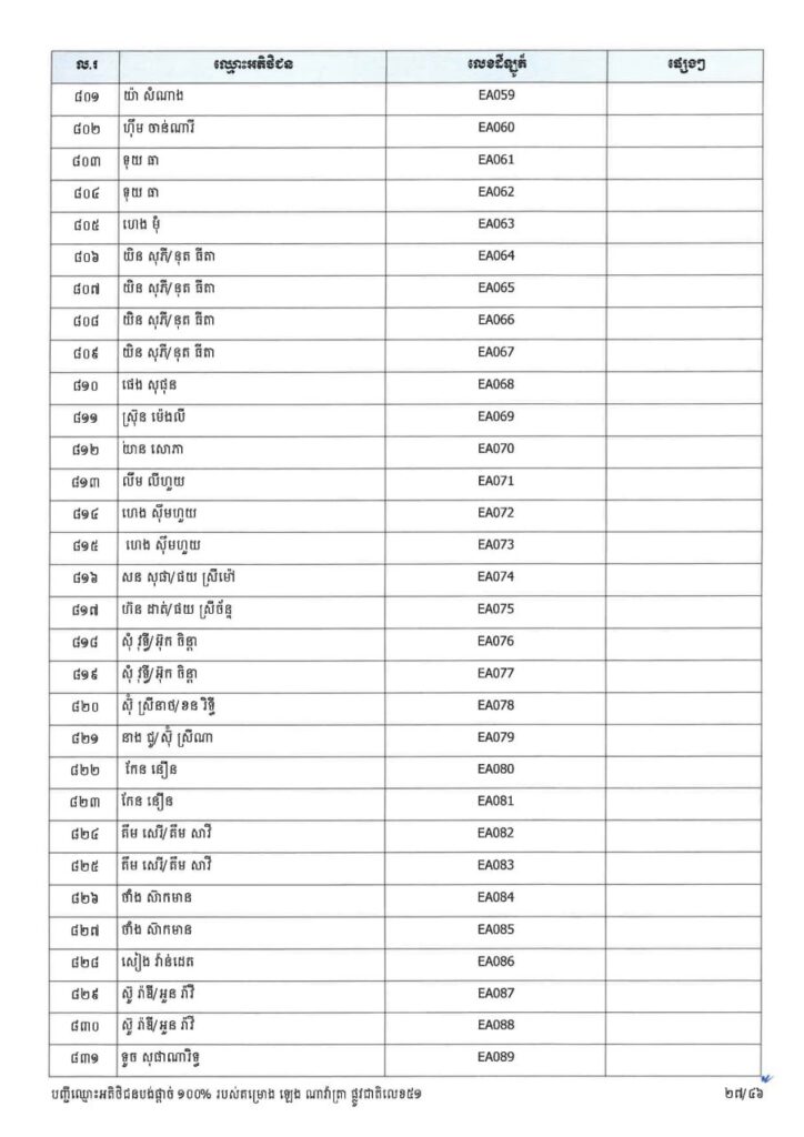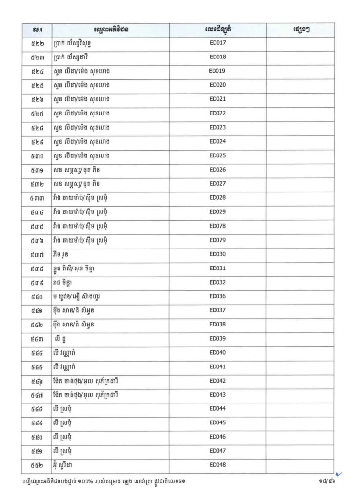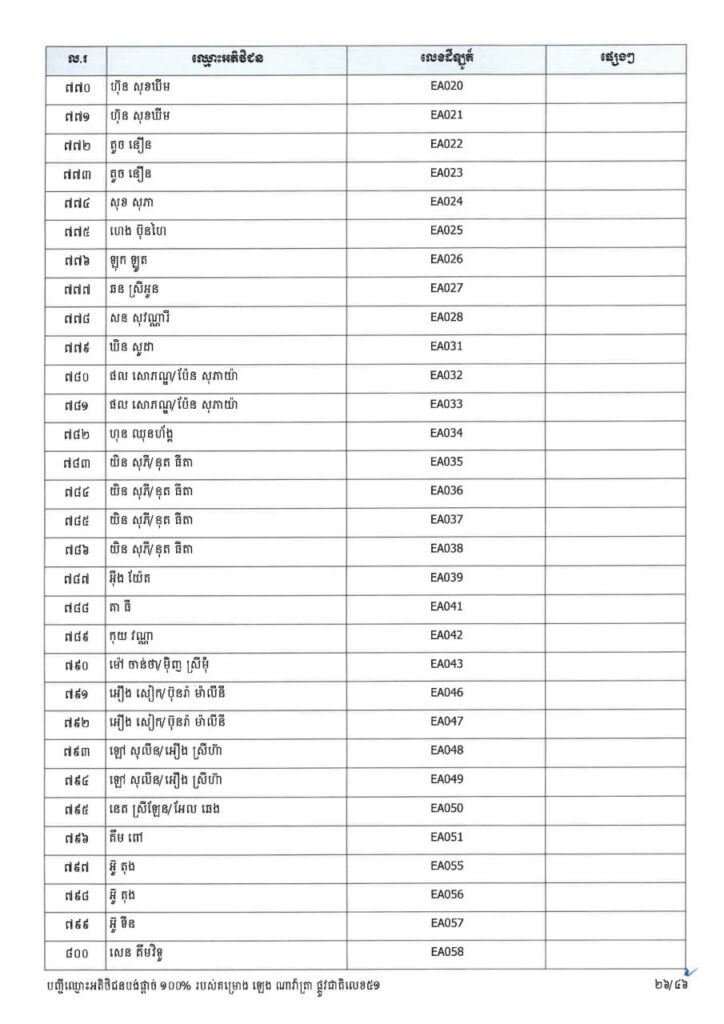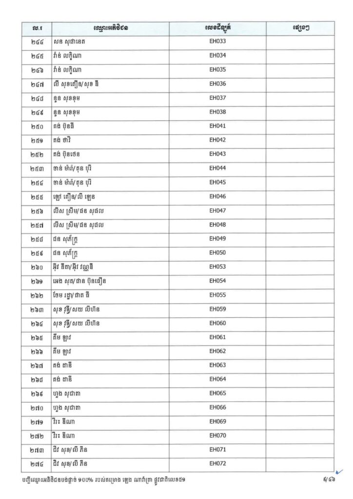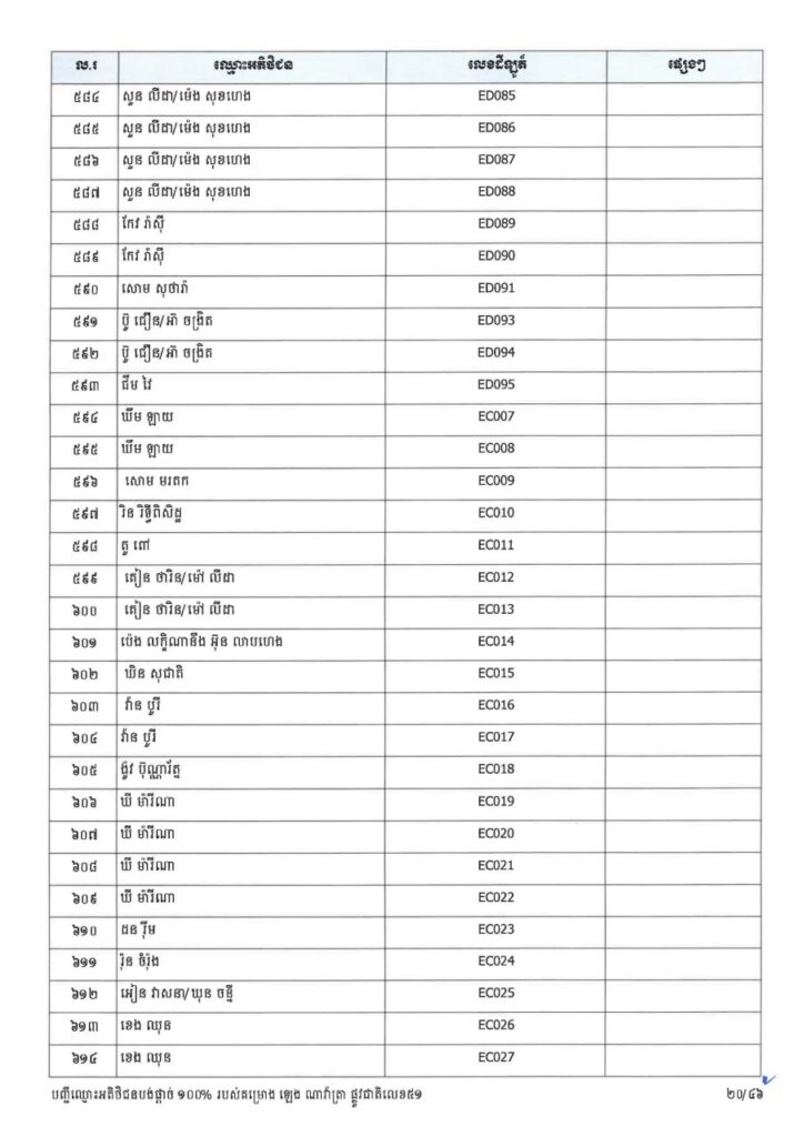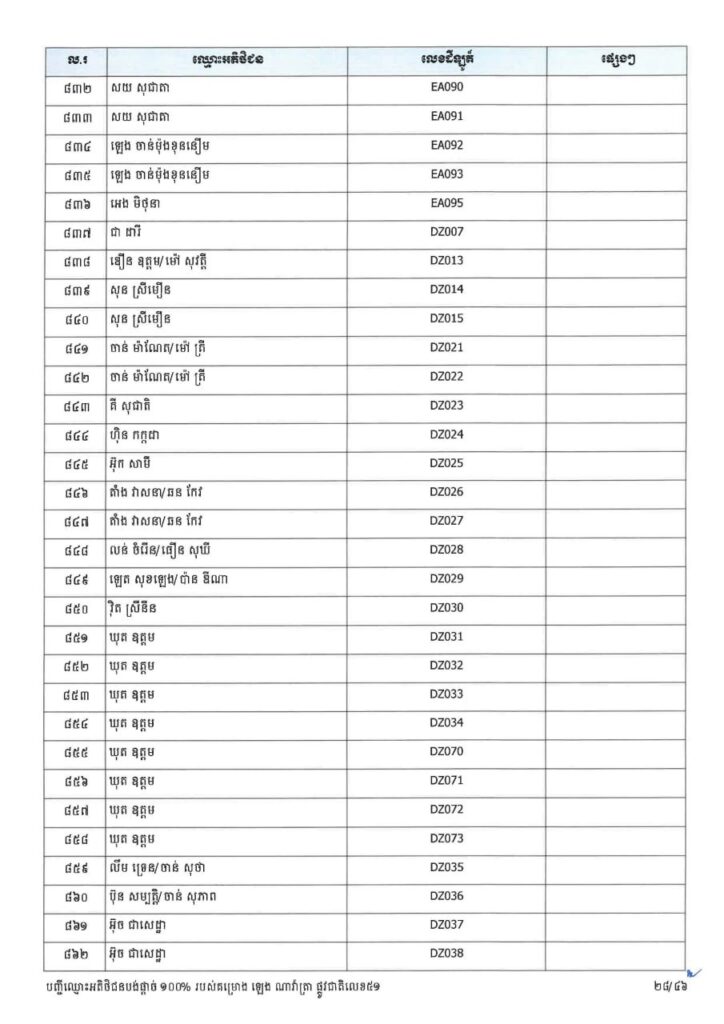 ក្រសួងរៀបចំដែនដី នគរូបនីយកម្ម និងសំណង់ នៅថ្ងៃទី២៣ ខែមីនា ឆ្នាំ២០២៦នេះ បានចេញសេចក្តីប្រកាសព័ត៌មាន ជម្រាបជូនអតិថិជនទាំងអស់របស់គម្រោង ឡេង ណាវ៉ាត្រា ផ្លូវជាតិលេខ៥១ ដែលមានទីតាំងស្ថិតនៅភូមិស្លុកស្លាត និងភូមិត្រពាំង ពោធ៍ ឃុំភ្នំតូច ស្រុកសាមគ្គីមុនីជ័យ ខេត្តកំពង់ស្ពឺ និងគម្រោង ឡេង ណាវ៉ាត្រា (Jasmine) ដែលស្ថិតនៅភូមិត្រពាំងស្លា ឃុំព្រះនិព្វាន ស្រុកគងពិសី ខេត្តកំពង់ស្ពឺ ឲ្យជ្រាបថាក្រសួងនឹងបន្តទទួលពាក្យស្នើរសុំផ្ទេរកម្មសិទ្ធ អតិថិជនដែលបង់ប្រាក់ថ្លៃលក់ទិញដីឡូត៍និងផ្ទះគ្រប់ចំនួន ១០០%។