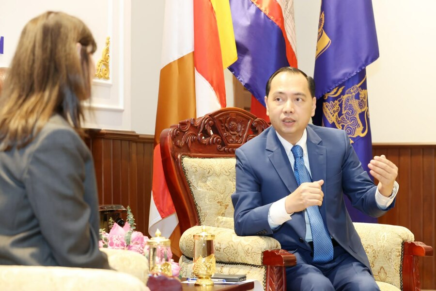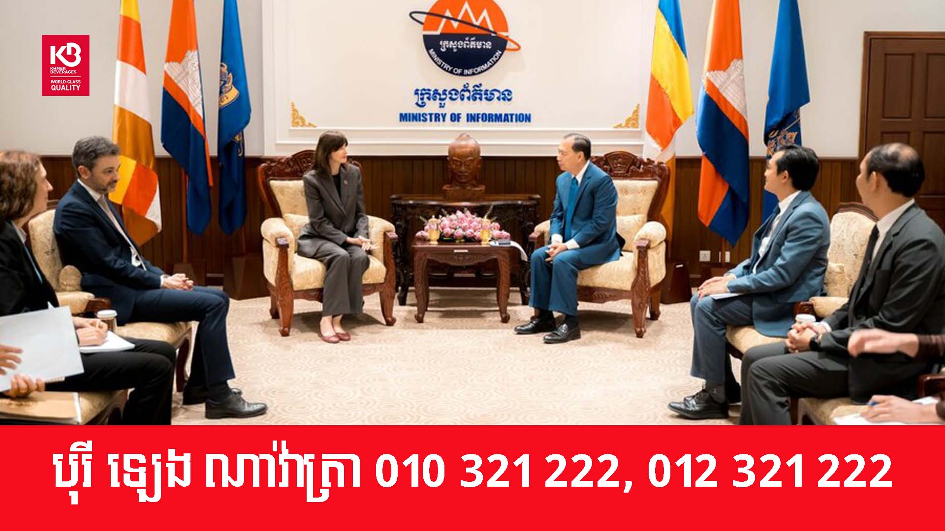 (ភ្នំពេញ)៖ ឯកឧត្តម នេត្រ ភក្ត្រា រដ្ឋមន្ត្រីក្រសួងព័ត៌មាន បានទទួលជួបពិភាក្សាការងារជាមួយ លោកស្រី Vladanka Andreeva អ្នកសម្របសម្រួលអង្គការសហប្រជាជាតិ (UN Resident Coordinator) ប្រចាំកម្ពុជា ដើម្បីពង្រឹងកិច្ចសហប្រតិបត្តិការលើវិស័យព័ត៌មាន ពិសេសផ្តោតលើការលើកកម្ពស់អក្ខរកម្មព័ត៌មាន និងប្រព័ន្ធផ្សព្វផ្សាយ ដើម្បីធានាបាននូវសន្តិសុខនិងសុវត្ថិភាពព័ត៌មានជូនដល់ប្រជាពលរដ្ឋកម្ពុជា។